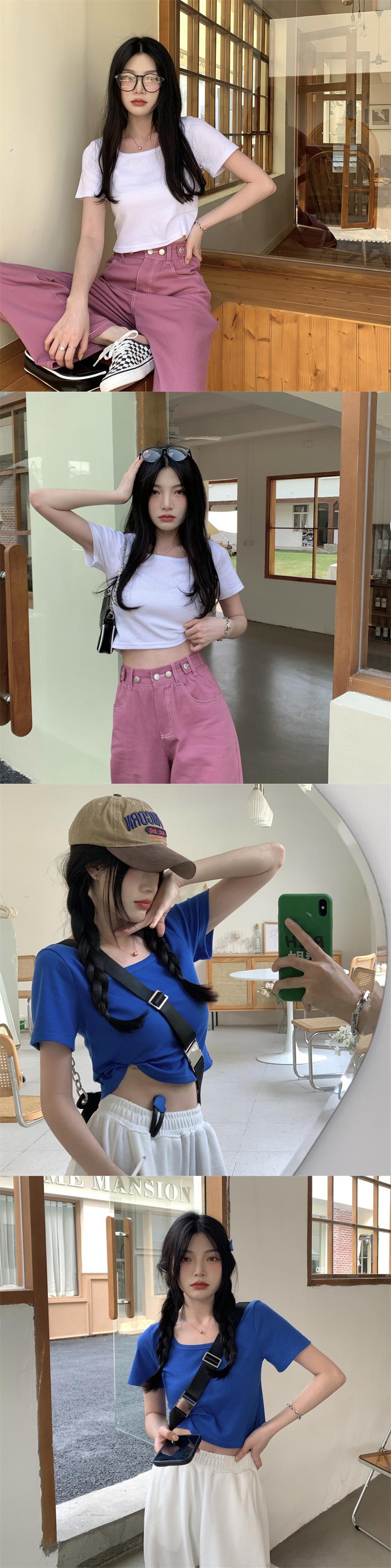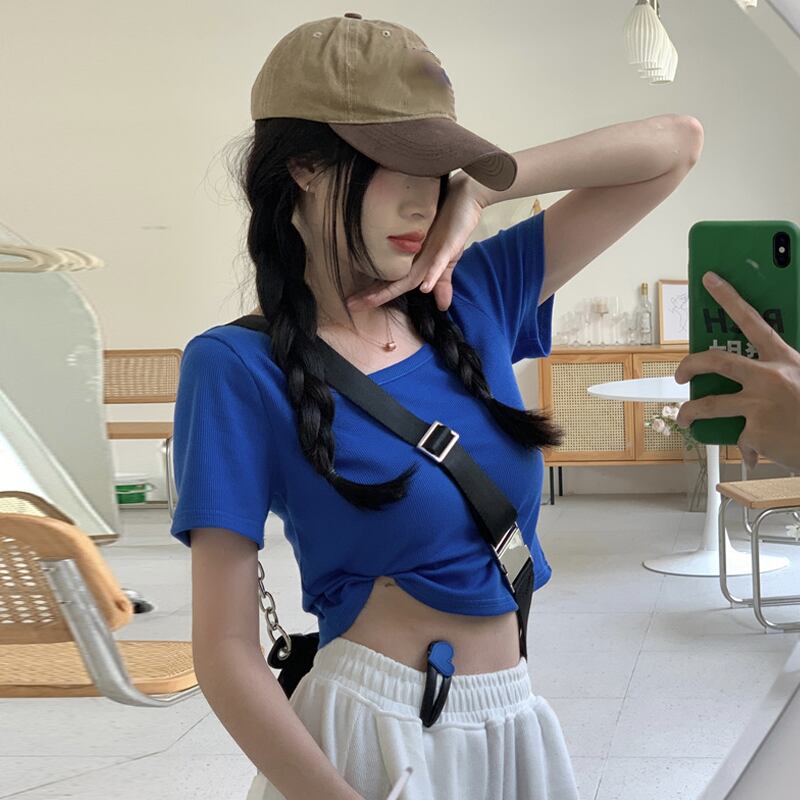 ブルーショートTシャツ夏服スリムトップス NEW 夏物 SYJ84021842247