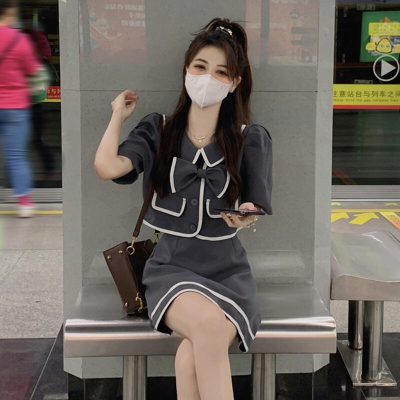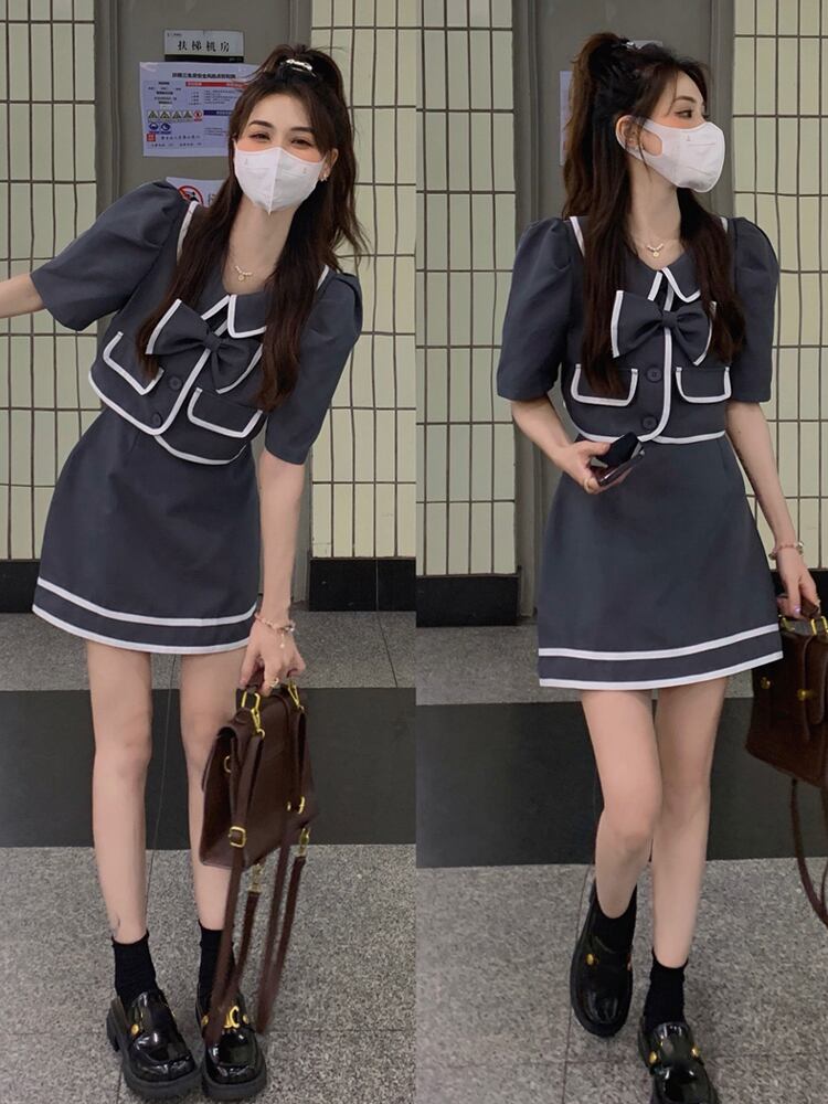 レディース夏服ショートトップス スカート セット 大人ガーリー スウィート キュート カジュアル 夏物 SYJ83288888961