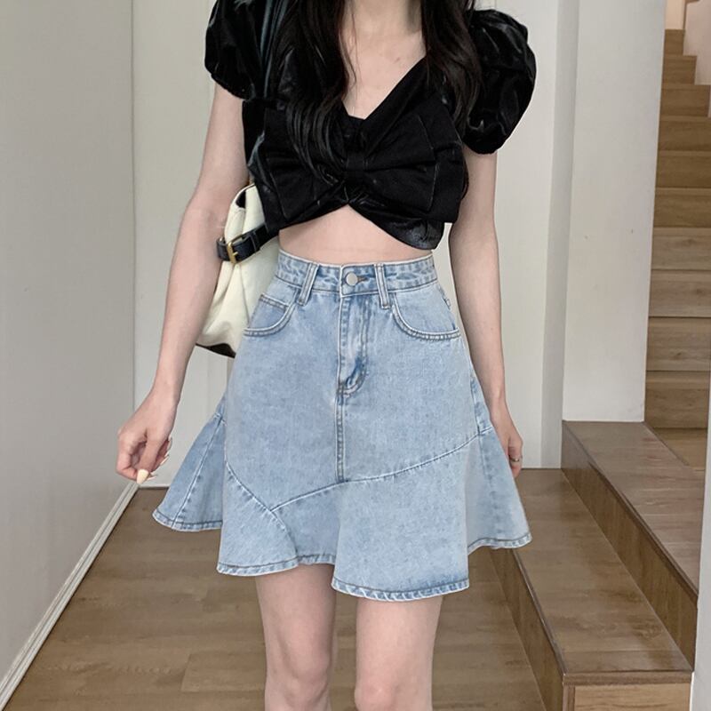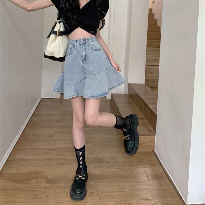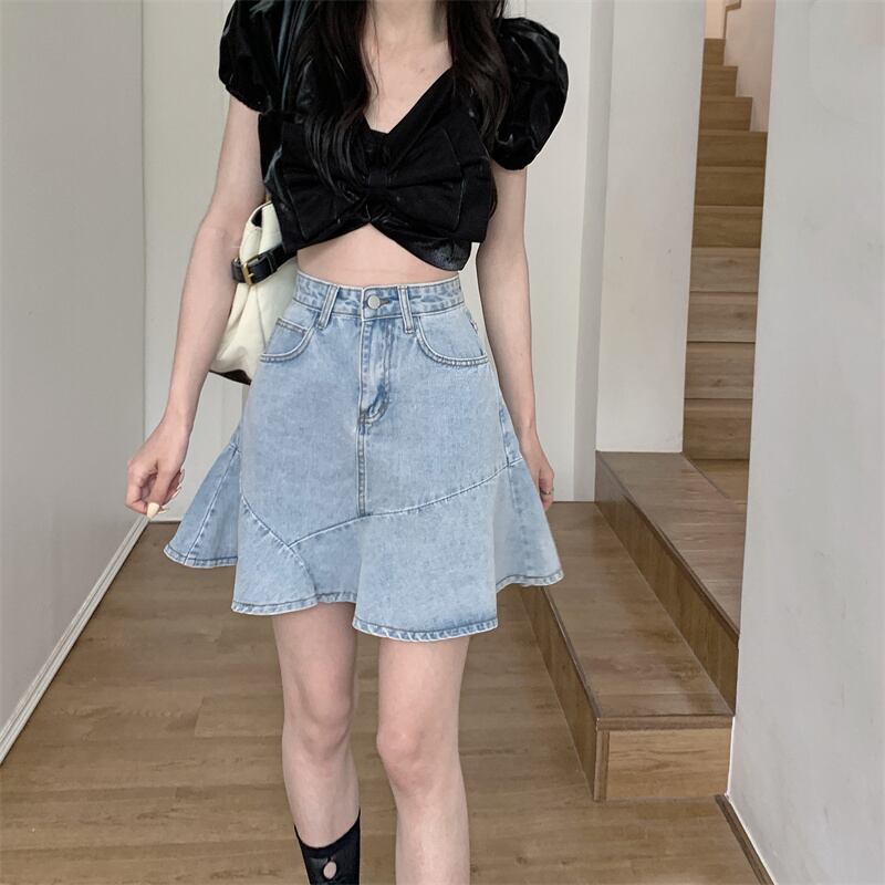 スカート 夏服ハイウェストウェストAラインショート 夏物 ウエスト SYJ68421274690
