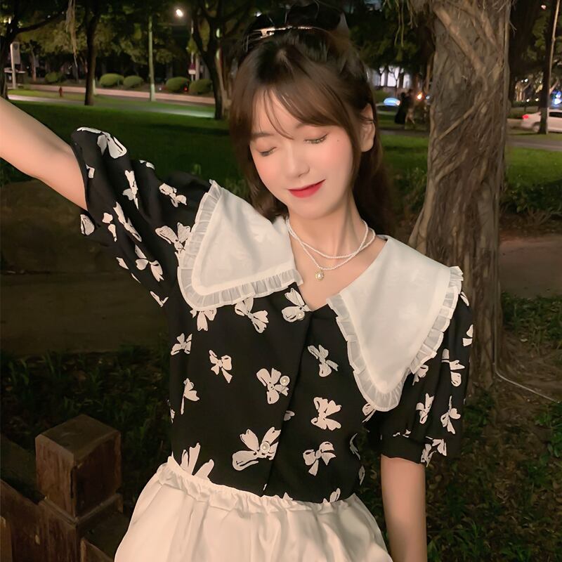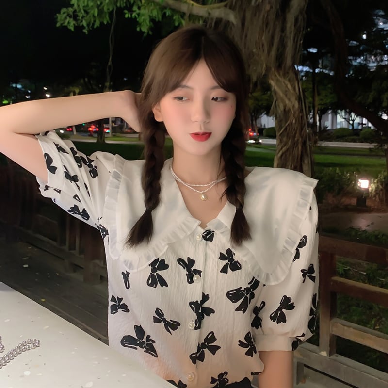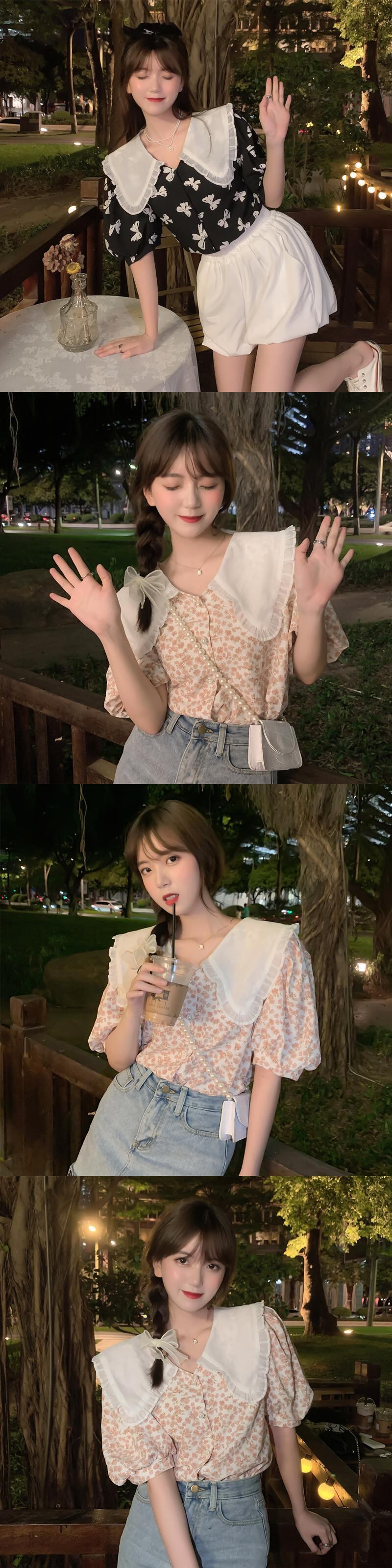 スリーブフローラルシャツ 夏服カラートップス 大人ガーリー スウィート キュート カジュアル 夏物 花柄 SYJ74774005206
