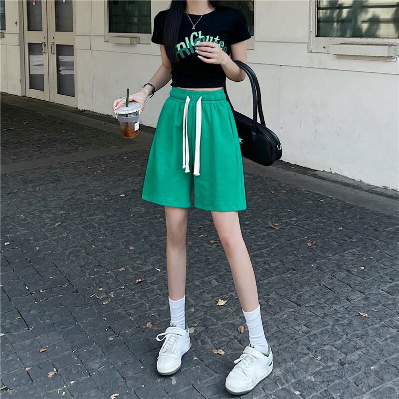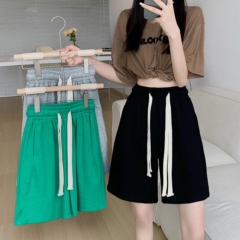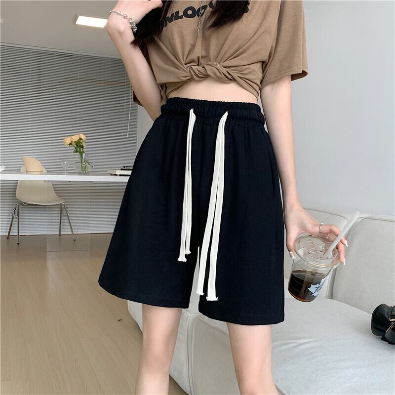 ブラックショーツ 夏服ハイウェストウェストワイドレッグパンツ ルーズカジュアル 夏物 ワイドパンツ ウエスト SYJ68074261767