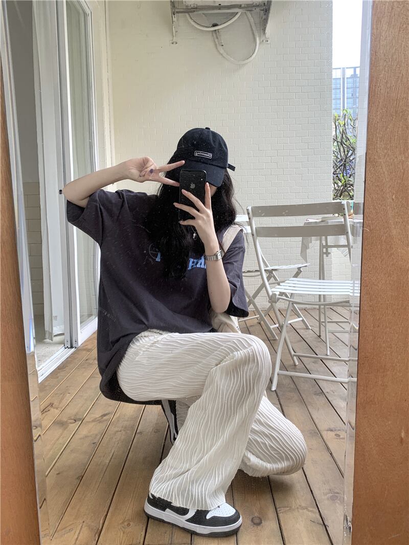 パンツ ハイウェスト夏服薄手ルーズNEW ストリート 夏物 ウエスト SYJ21035563098