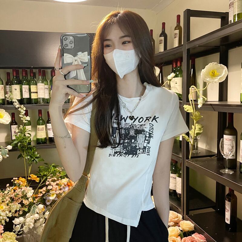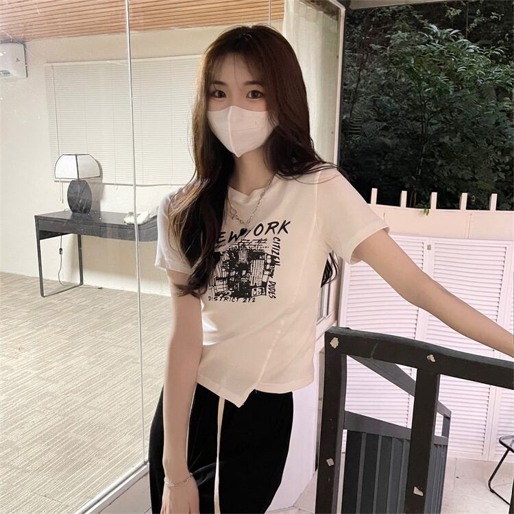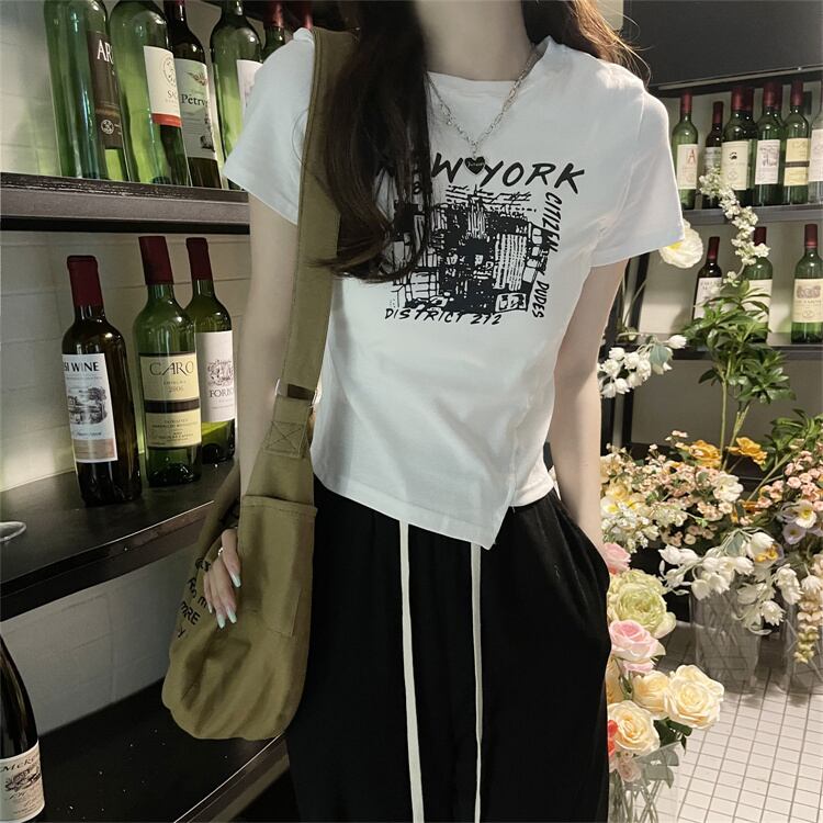 ホワイト半袖スリーブTシャツ夏服トップス ショート ハーフスリーブ 大人ガーリー スウィート キュート カジュアル 夏物 SYJ85287025290