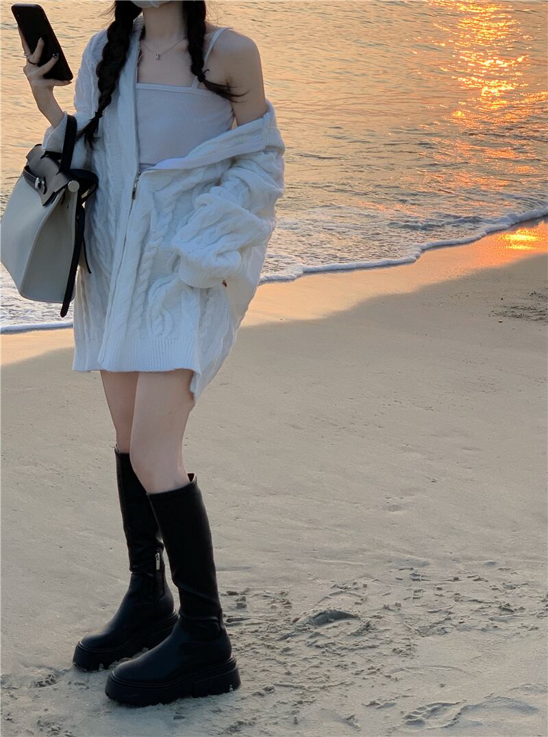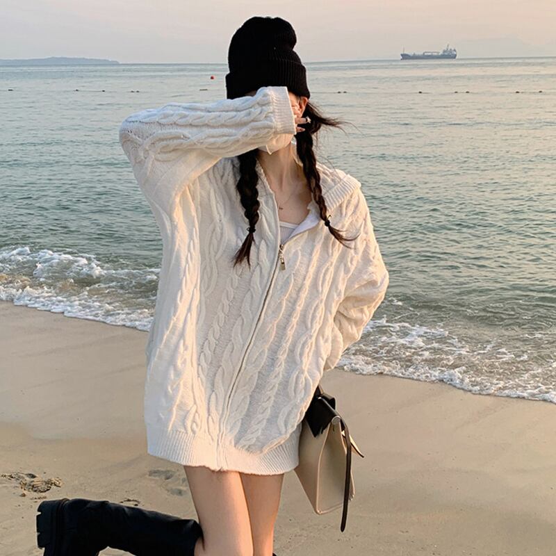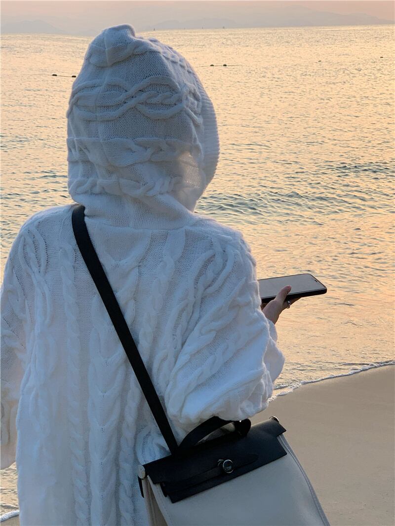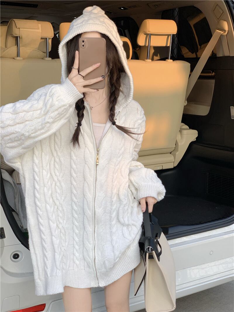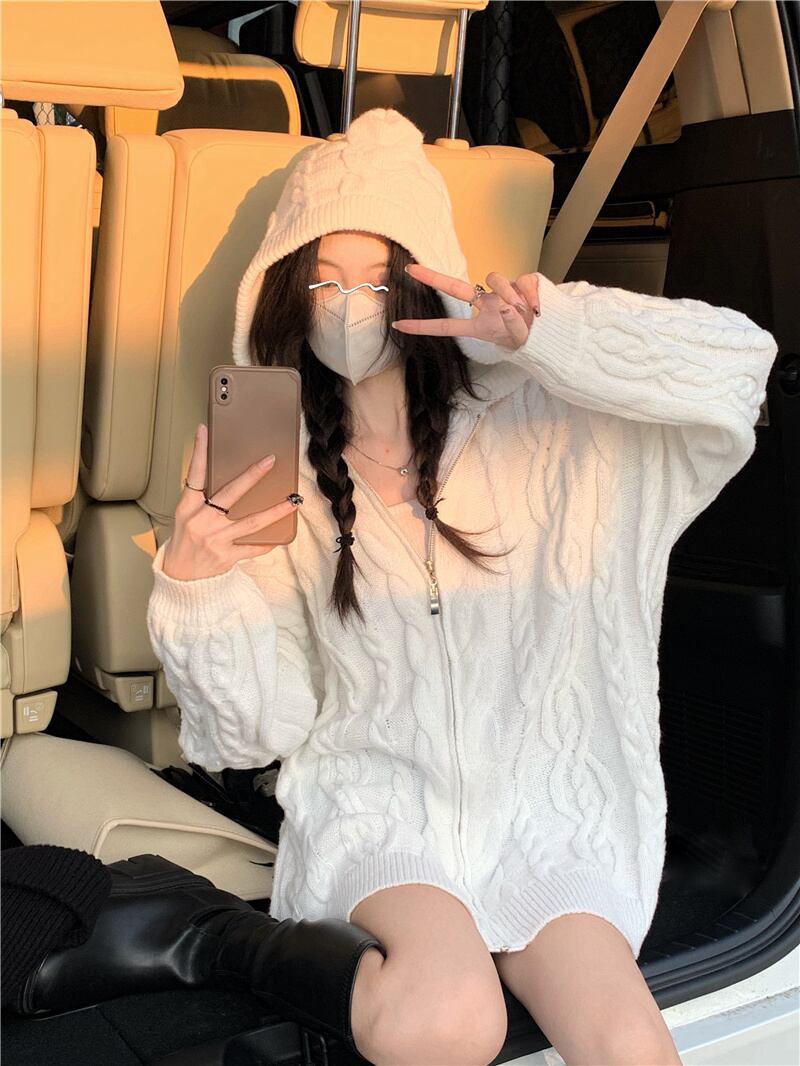 ホワイトフードセーター ジャケット スプリング秋物ニットカーディガン 春物 オータム SYJ75746092724