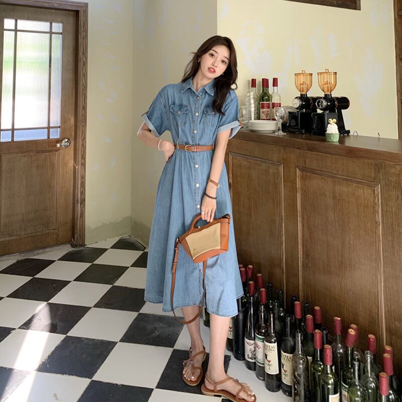 ワンピースレディース夏服スタンダードスカート レトロ 夏物 SYJ45472023382