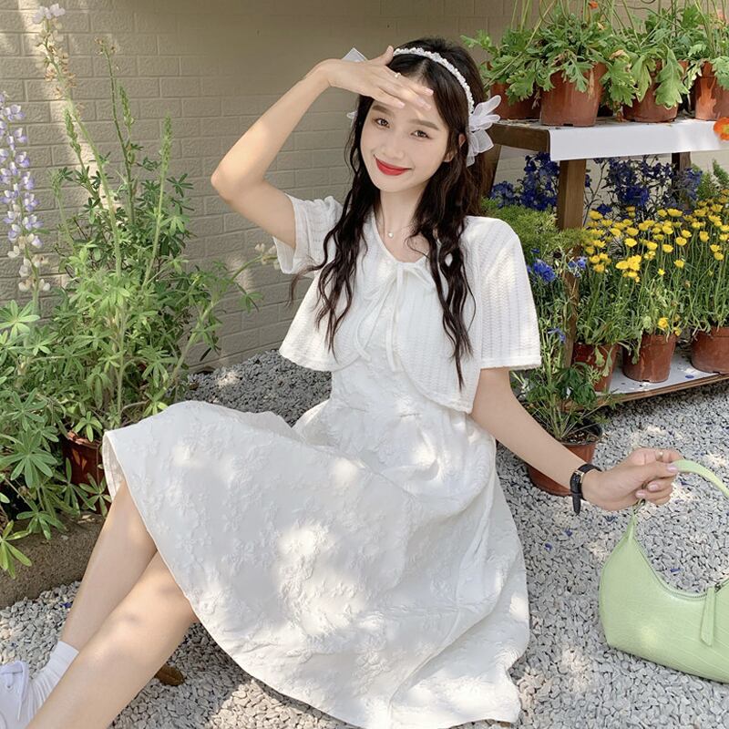 ホワイトワンピースレディース夏服スタンダードスカート レトロ 夏物 SYJ8942186575
