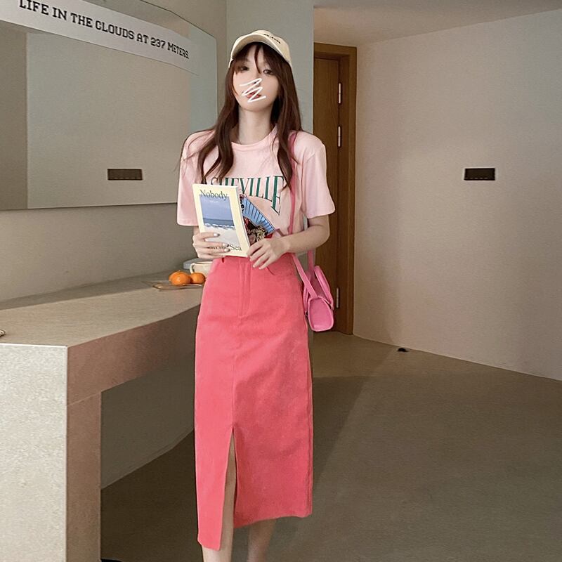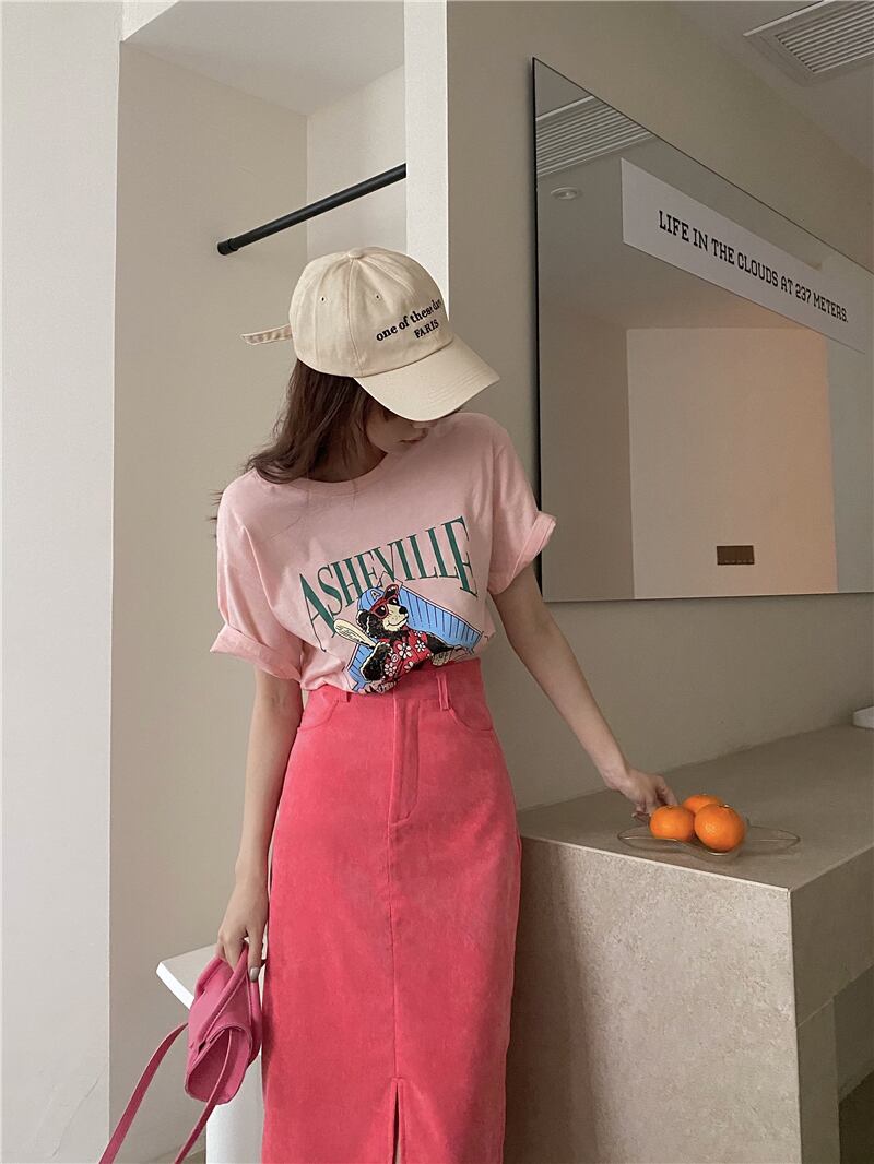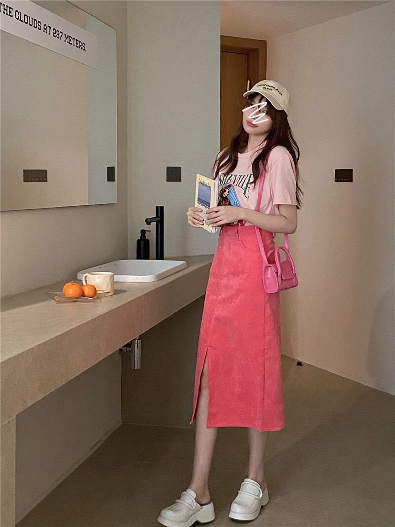 スカート 夏服スプリング秋物韓国ファッションスタイルAライン ピンク 春物 夏物 オータム ミドル丈 SYJ82788568965
