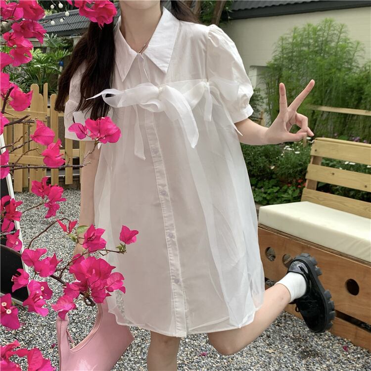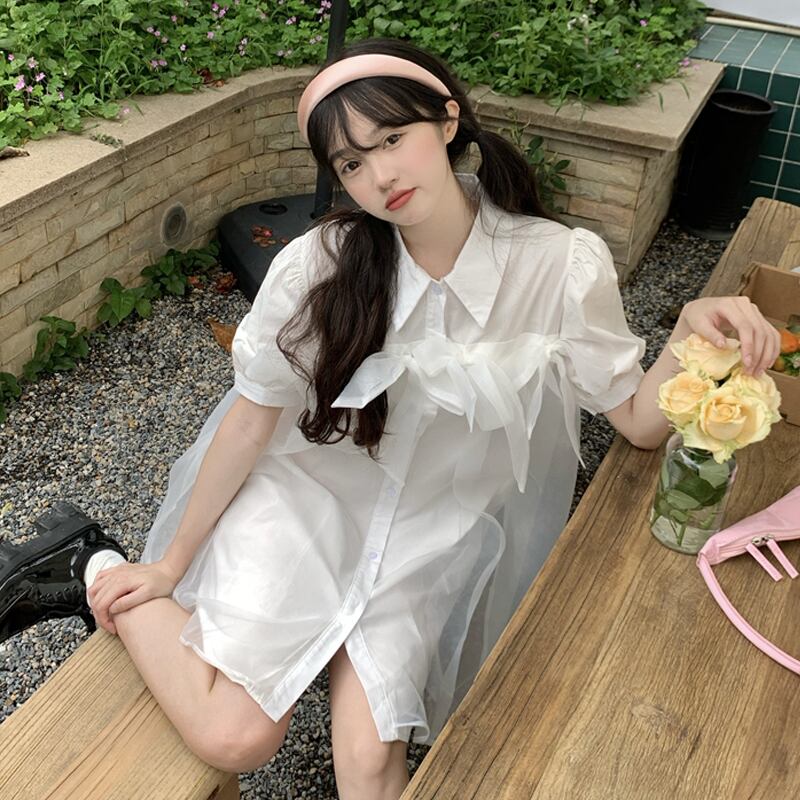 ブルースリーブシャツ ワンピース夏服スカート 大人ガーリー スウィート キュート カジュアル 夏物 SYJ38355774753