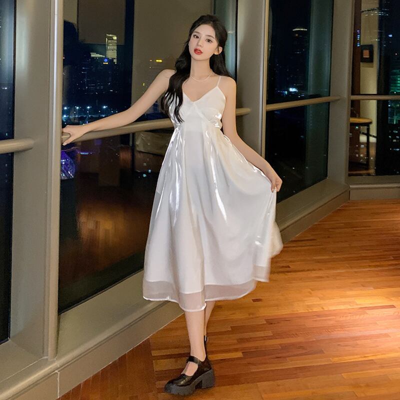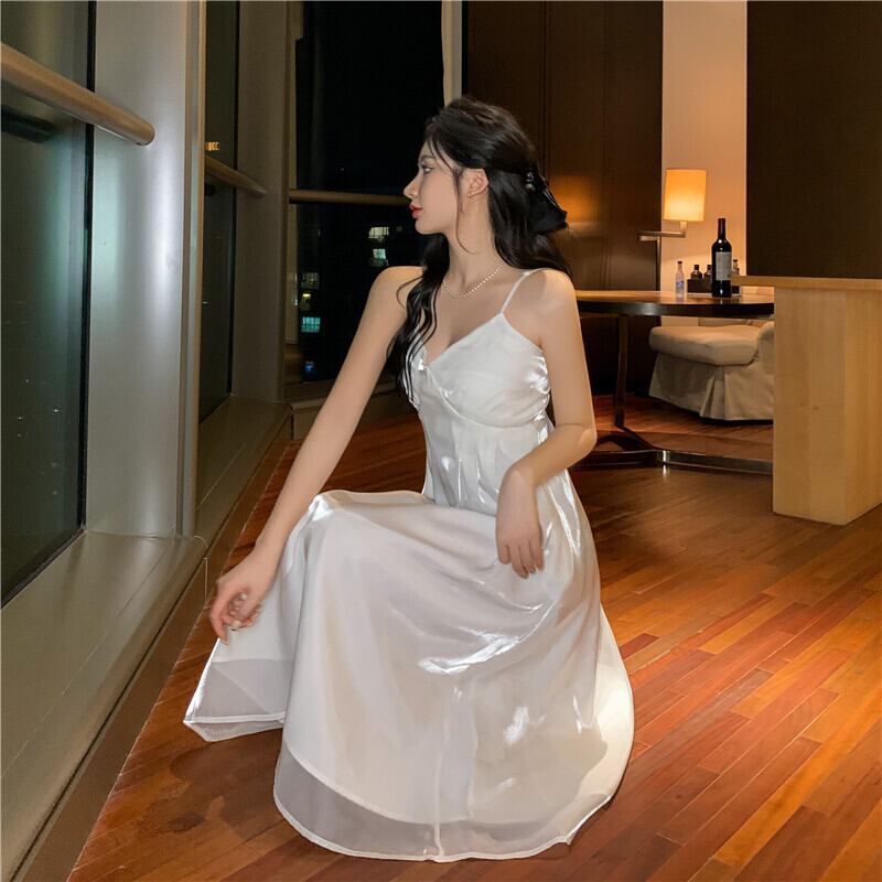 ホワイトワンピース夏服スタイルロングスカート 大人ガーリー スウィート キュート カジュアル 夏物 SYJ22894115577