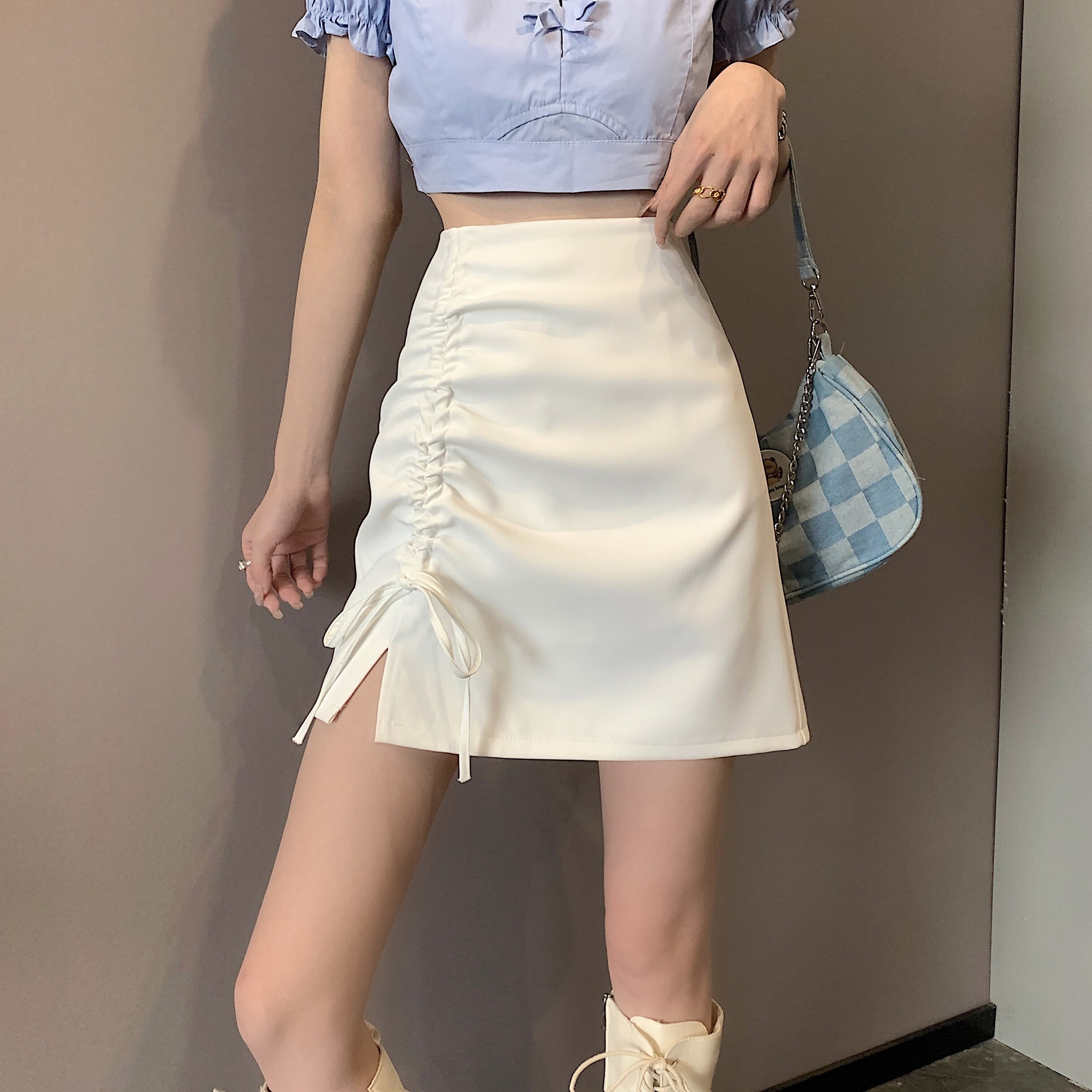 ホワイトスリットスカート 夏服ハイウェストウェストAラインショート 大人ガーリー スウィート キュート カジュアル 夏物 ウエスト SYJ88930959813
