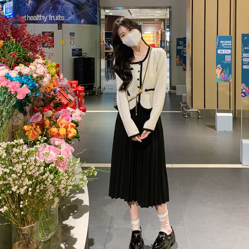 色:オフホワイトのトップシングルピース,黒スカートワンピース