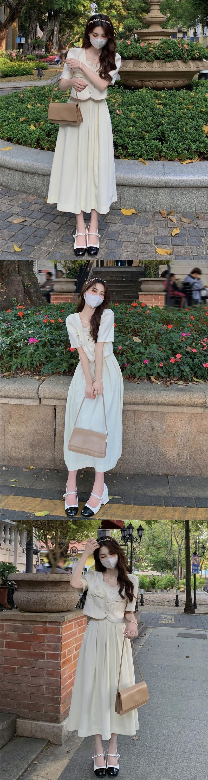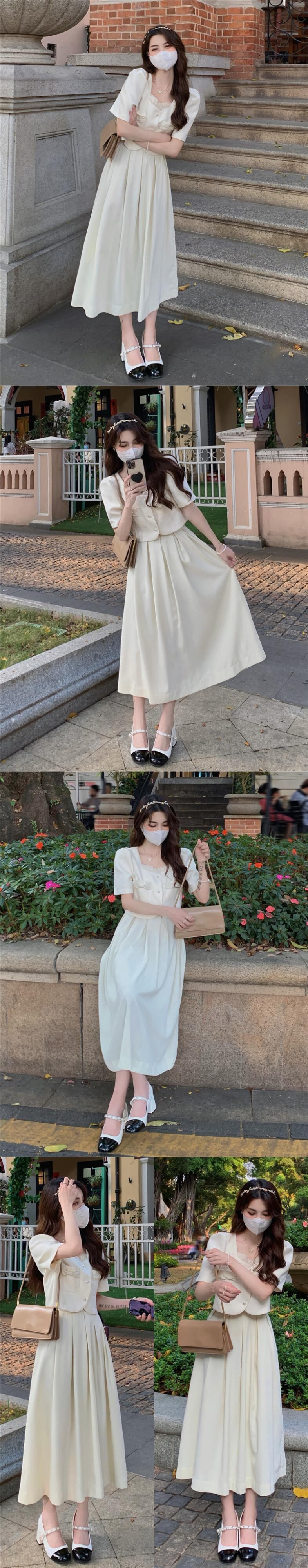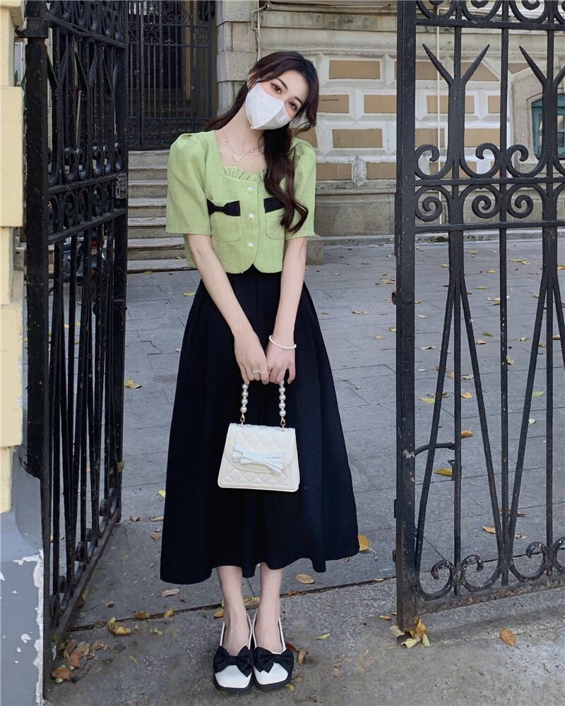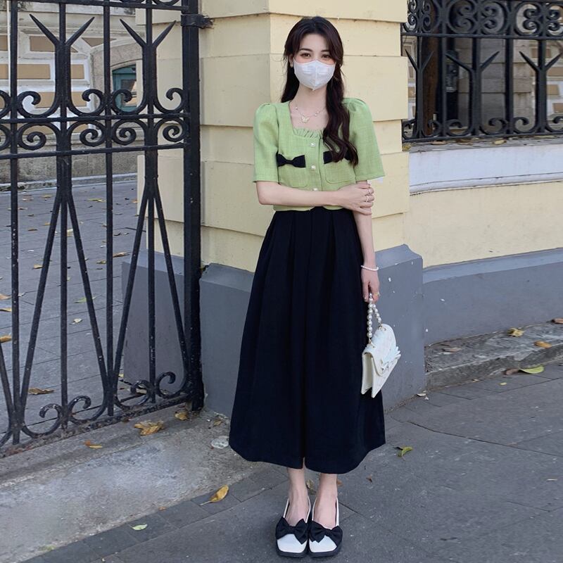 色:グリーントップシングルピース,ホワイトトップシングルピース,黒スカートワンピース,白いスカートワンピース