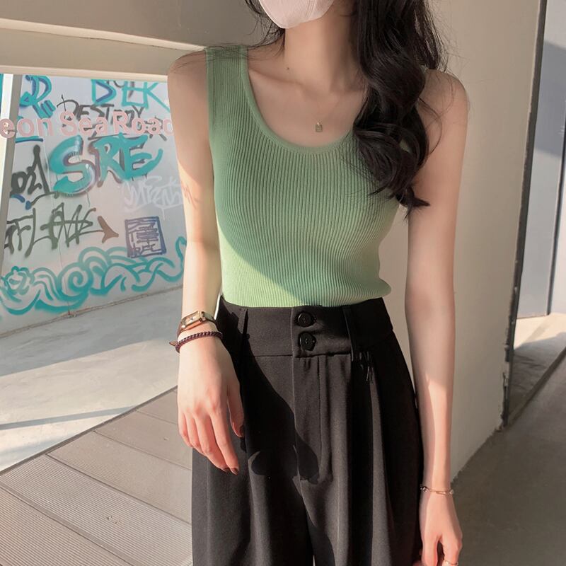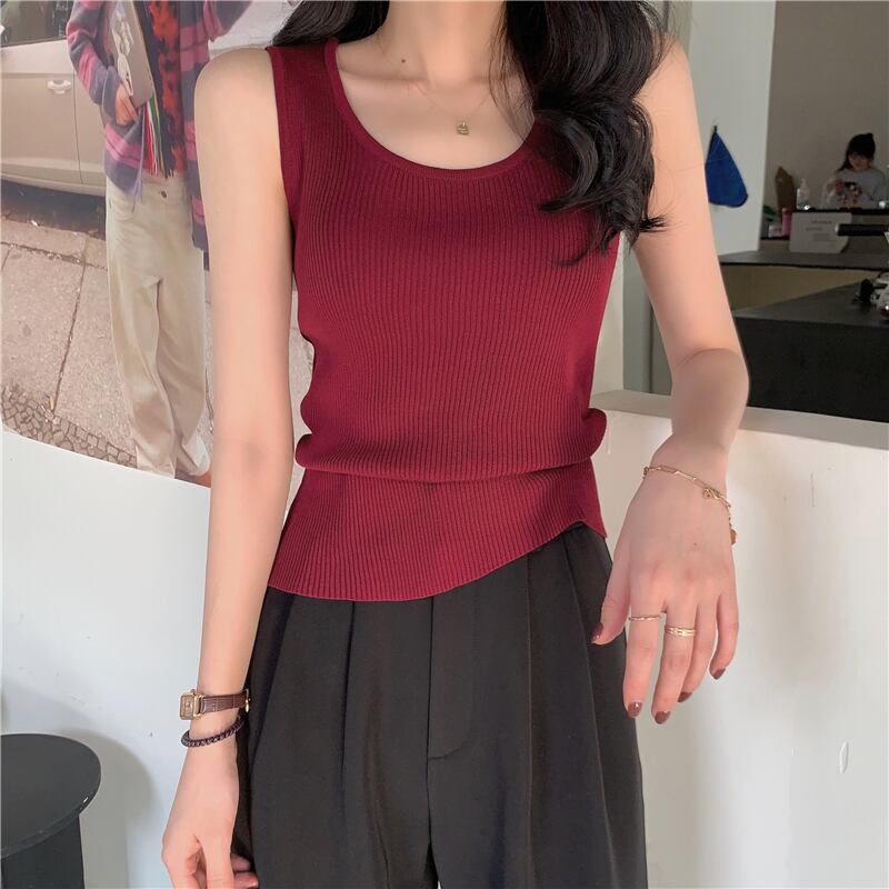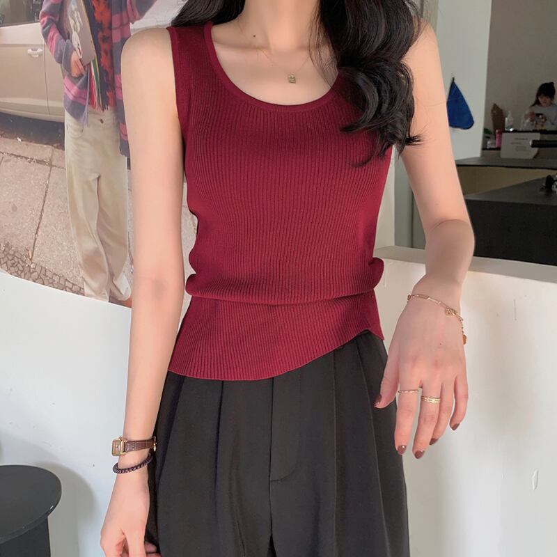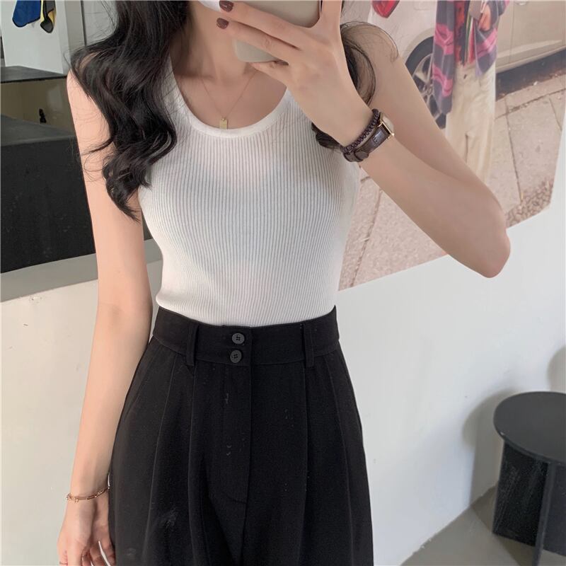ホワイトニット夏服ゆったりノースリーブショートトップス NEW 夏物 SYJ37843565116