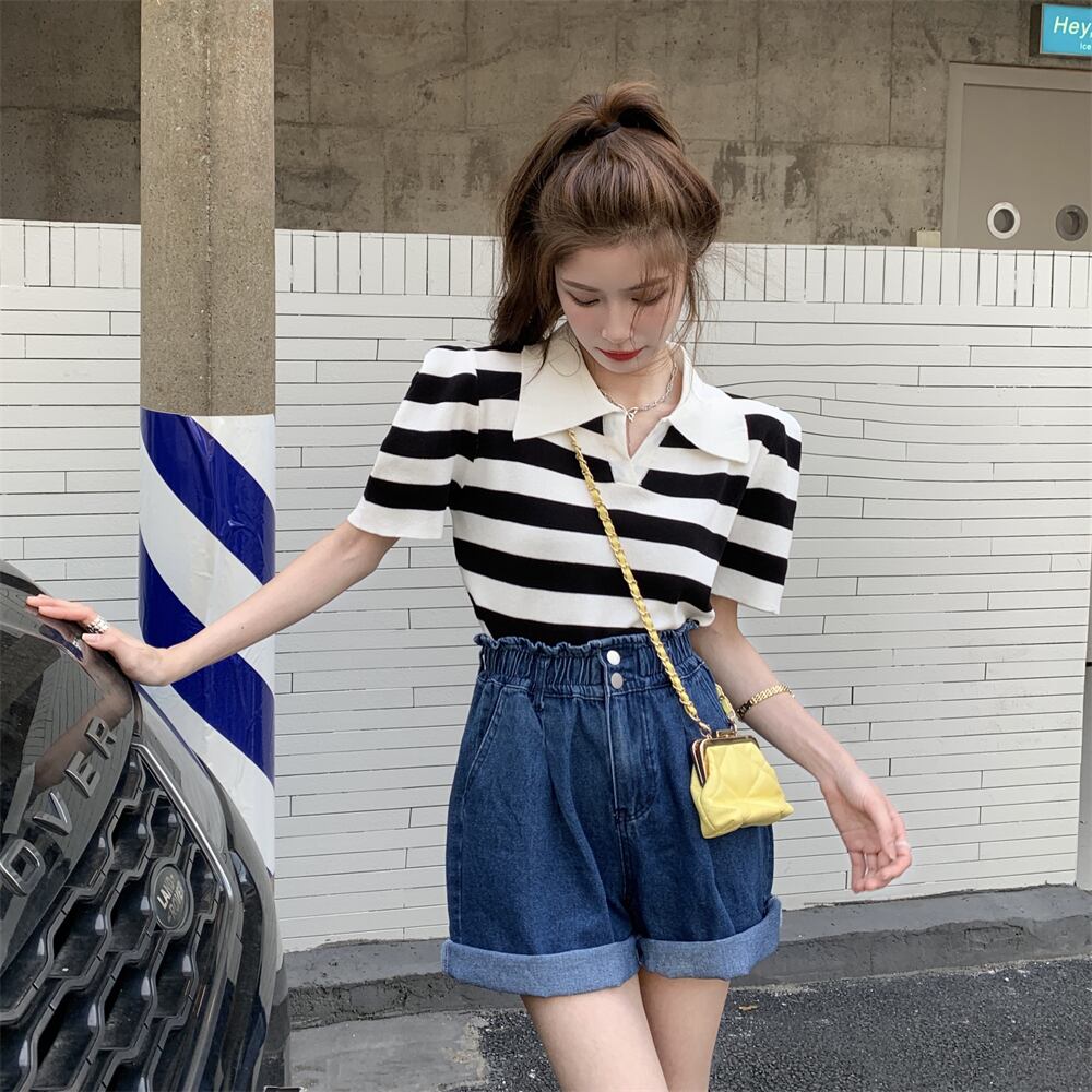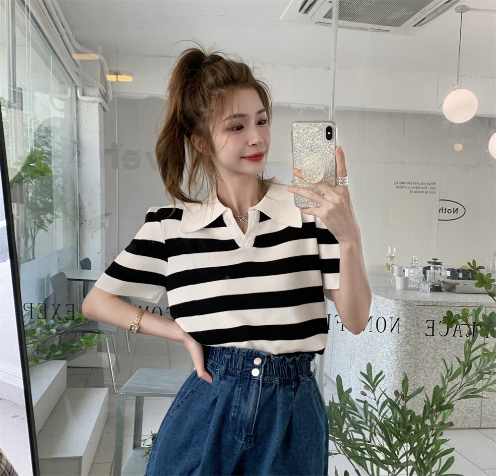 ストライプTシャツ夏服カラートップス NEW 夏物 SYJ12420192380