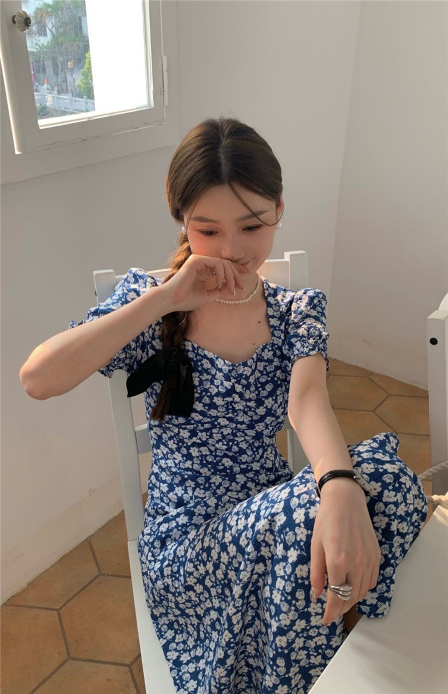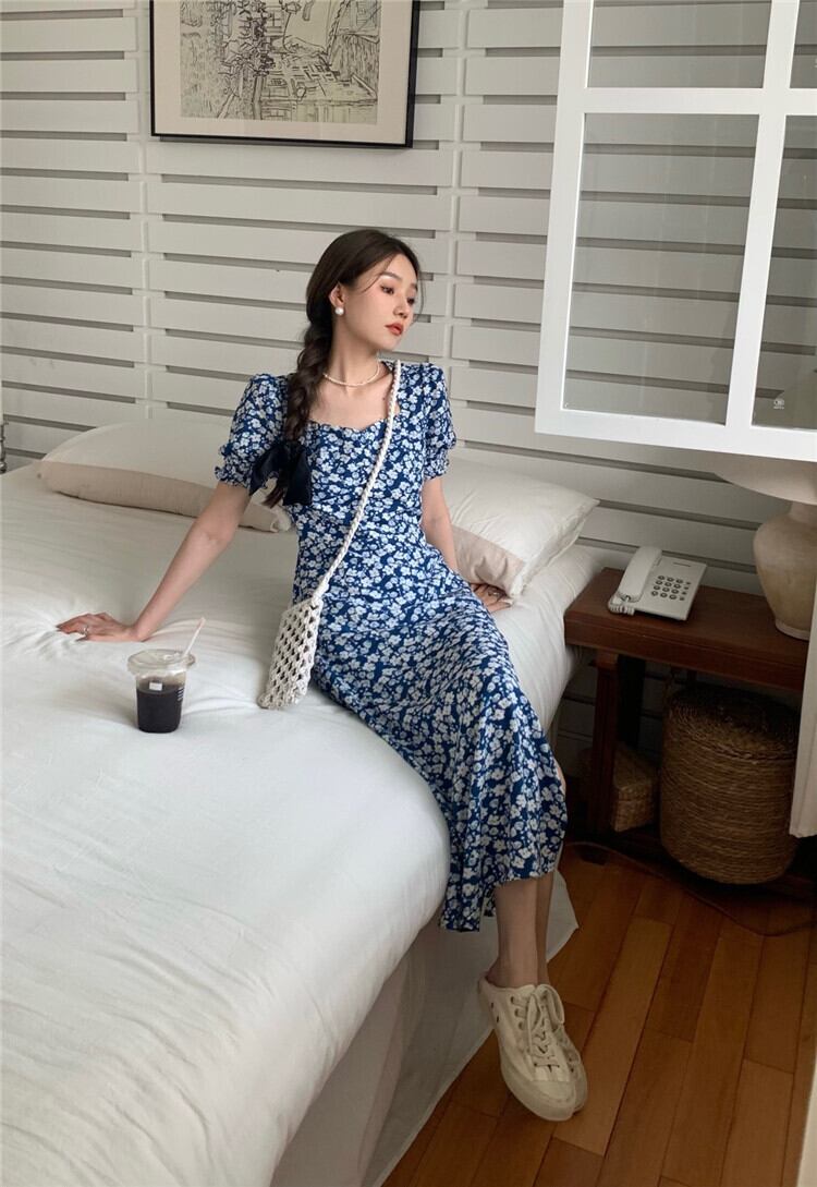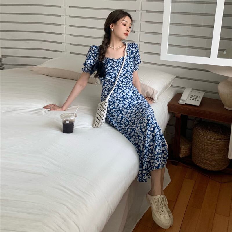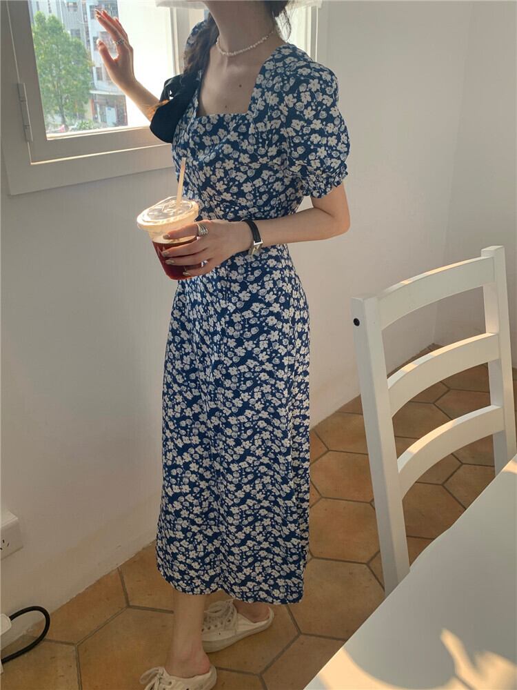 スリーブフローラルワンピース夏服スタンダードロングスカート レトロ 夏物 花柄 SYJ96779038300