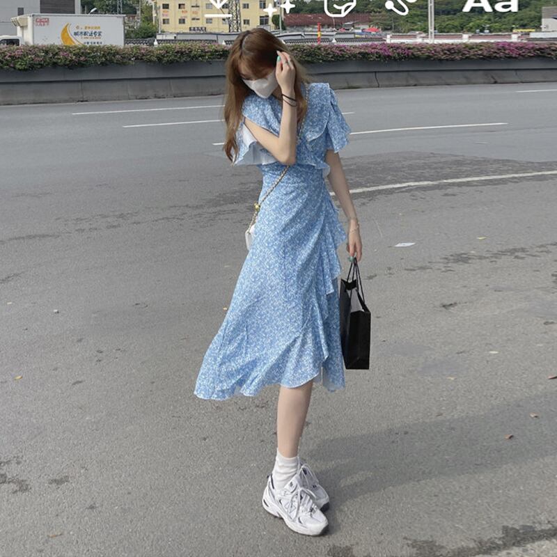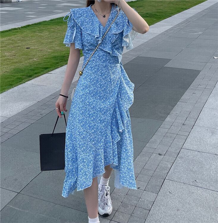 フローラルVネックウェストワンピース夏服スカート 大人ガーリー スウィート キュート カジュアル 夏物 花柄 ウエスト SYJ66859882006