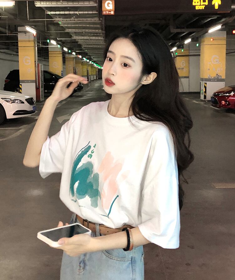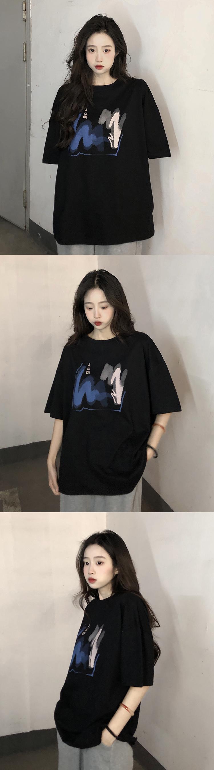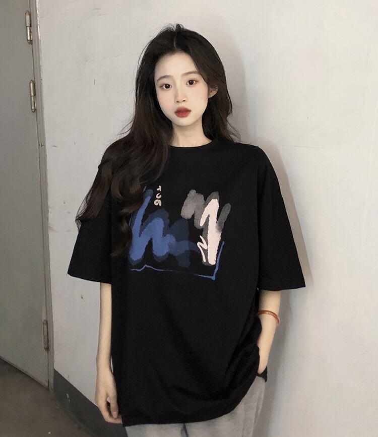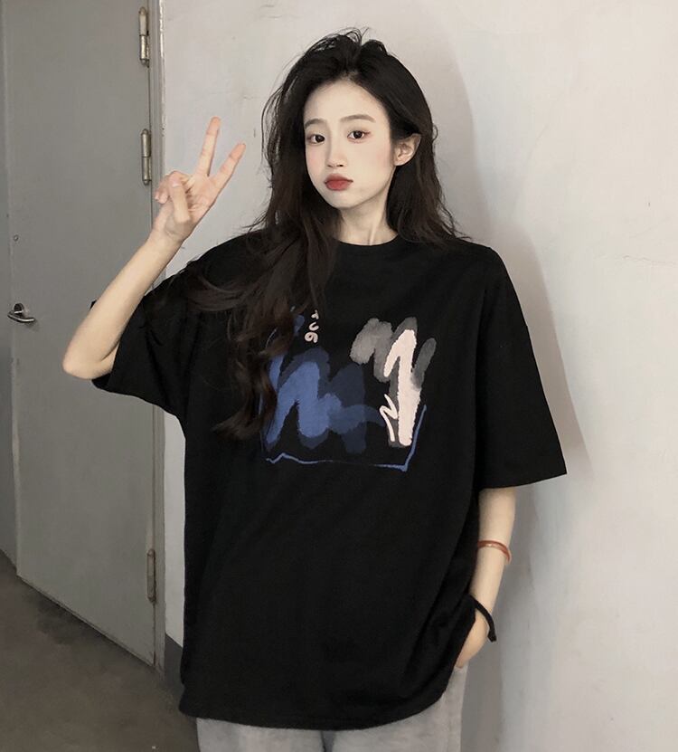 ブラックTシャツ夏服ルーズ韓国ファッションスタンダードトップス コットン レトロ 夏物 スタイル SYJ69841878330