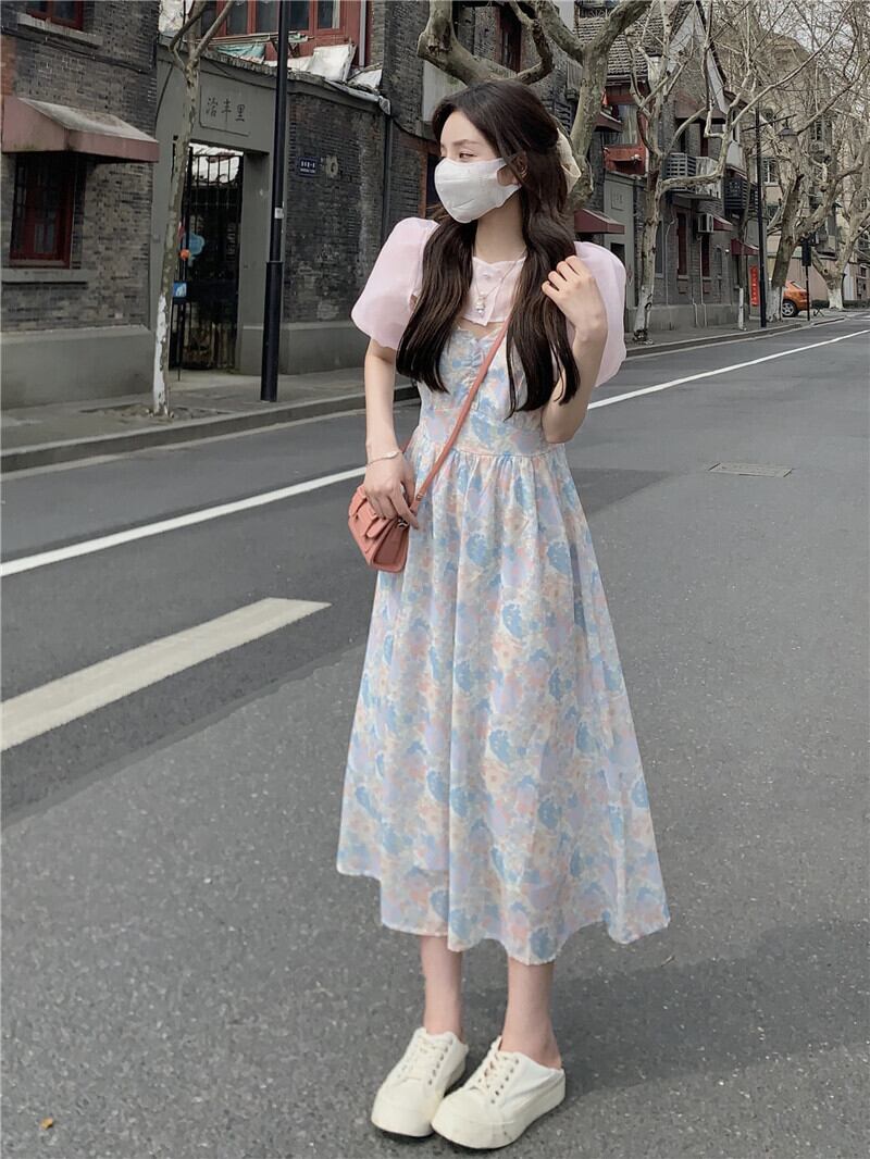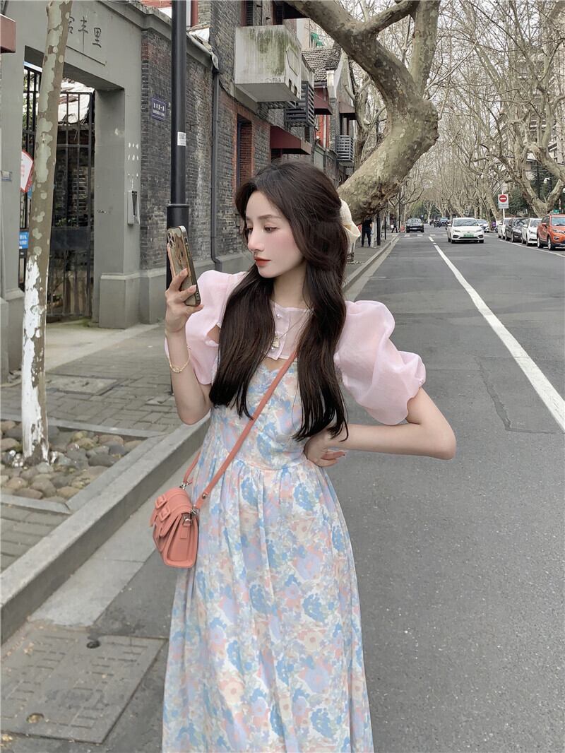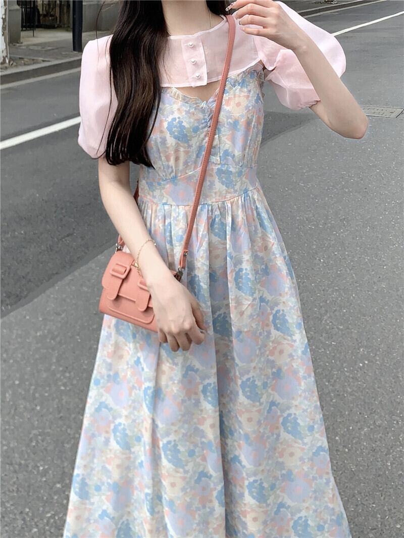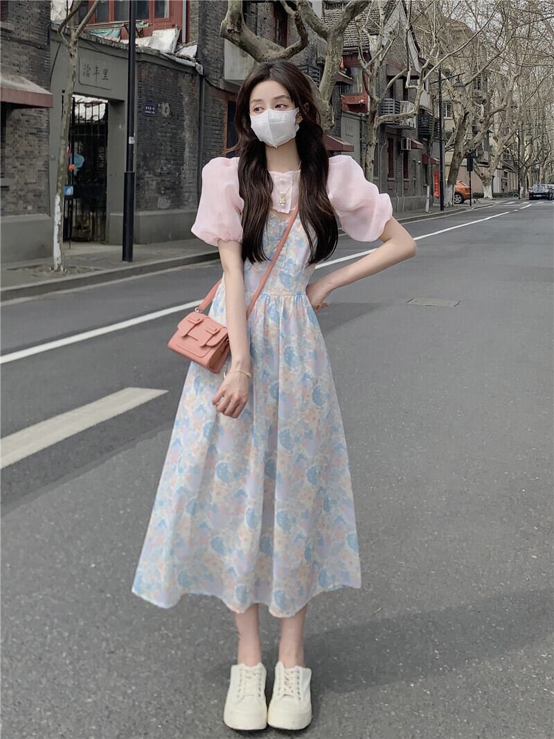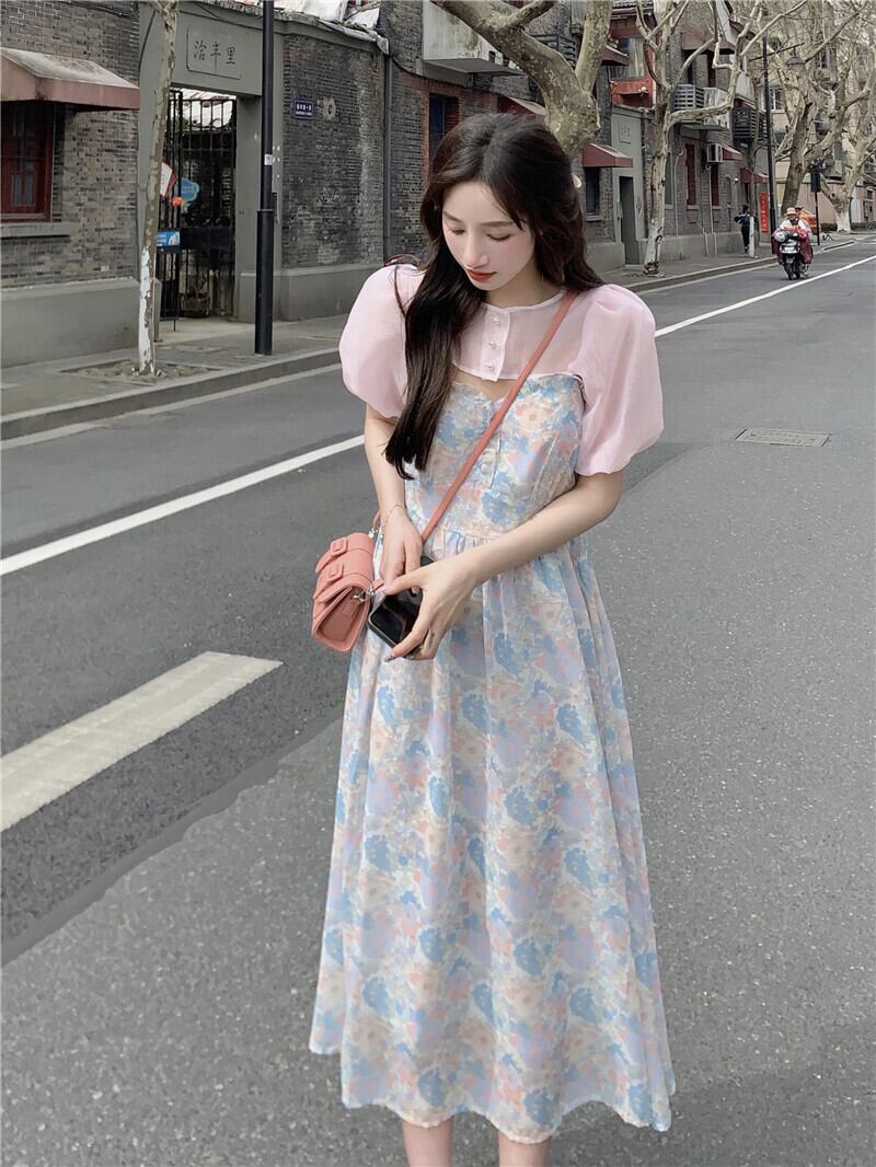 フローラルワンピースレディース夏服ウェストロングスカート 大人ガーリー スウィート キュート カジュアル 夏物 花柄 ウエスト SYJ57736567410