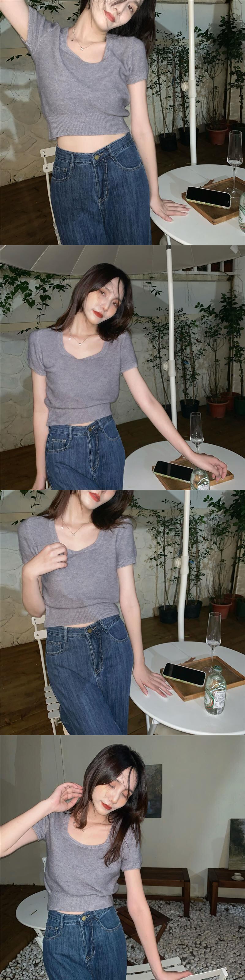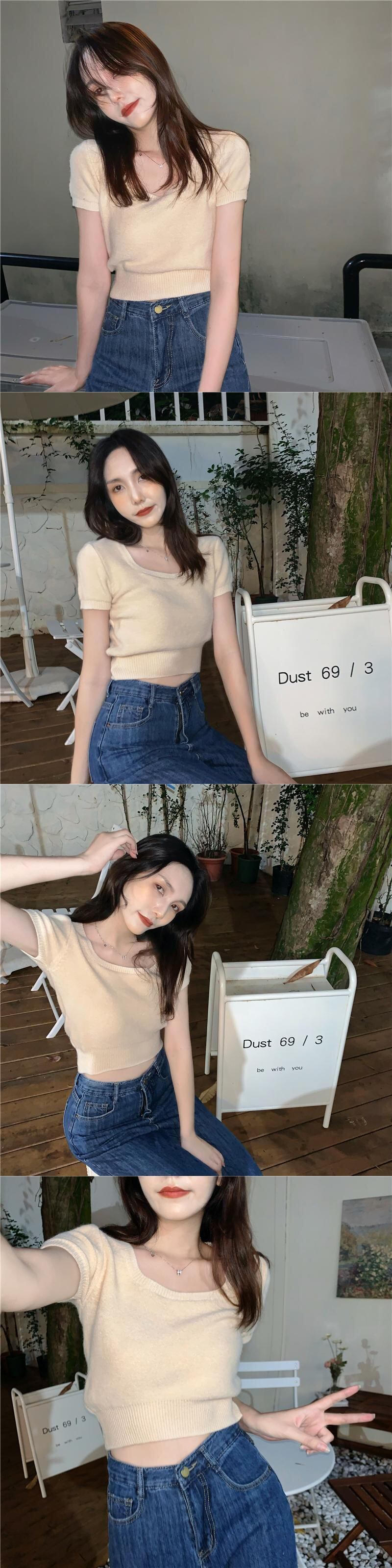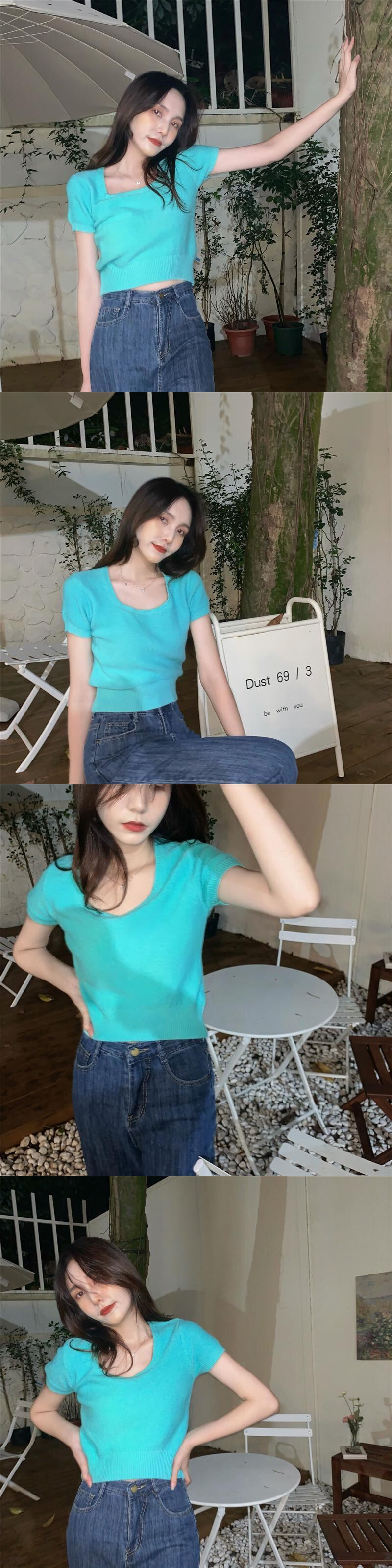ホワイトショートニットTシャツシャツ 夏服ゆったりトップス 夏物 ピュア SYJ62794648293
