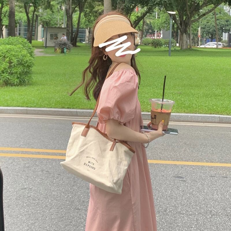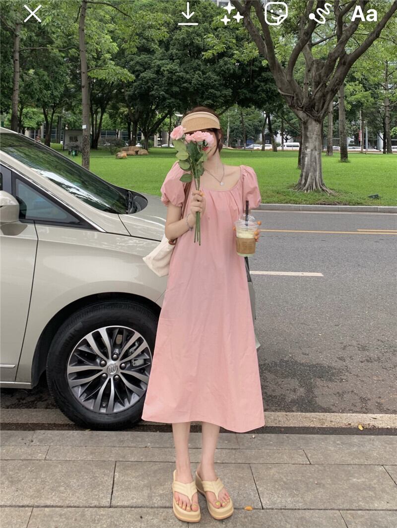 スリーブワンピースレディース夏服ロングスカート ピンク 大人ガーリー スウィート キュート カジュアル 夏物 SYJ26129426539