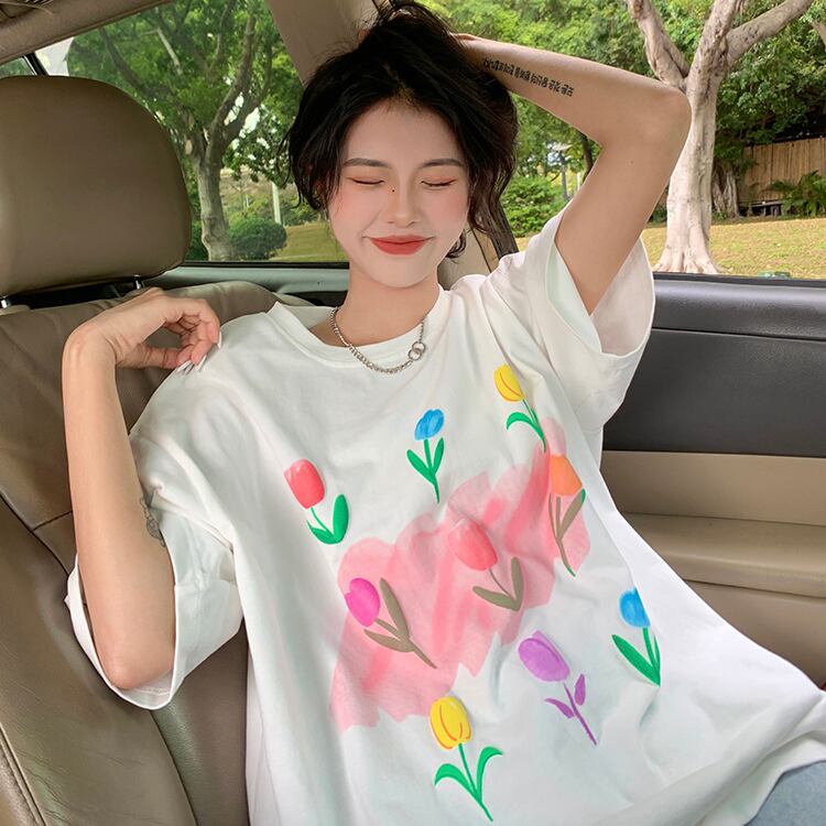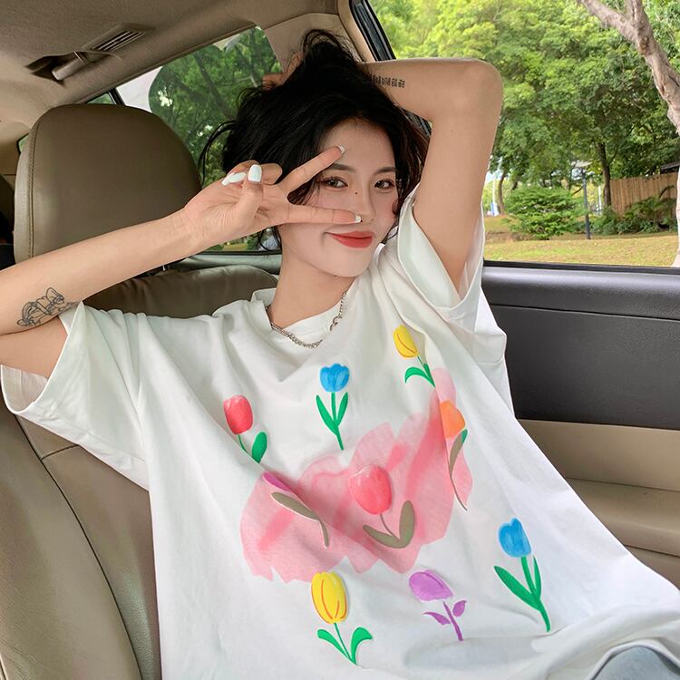 ホワイトTシャツ夏服ルーズトップス NEW コットン 夏物 SYJ48238662986