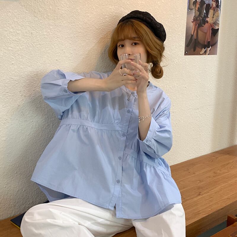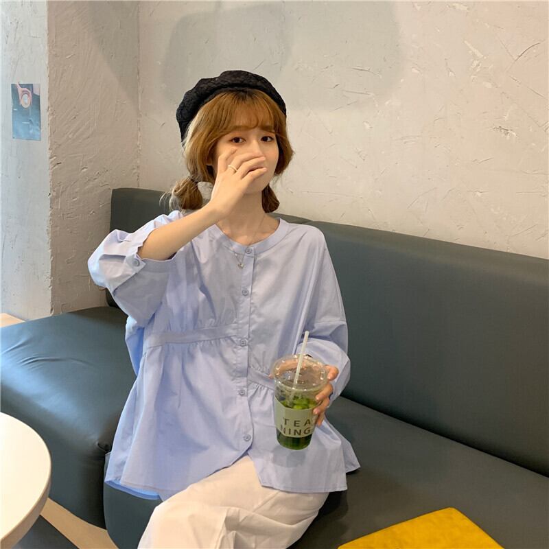 ブルースリーブシャツ 夏服トップス 夏物 SYJ78050572893