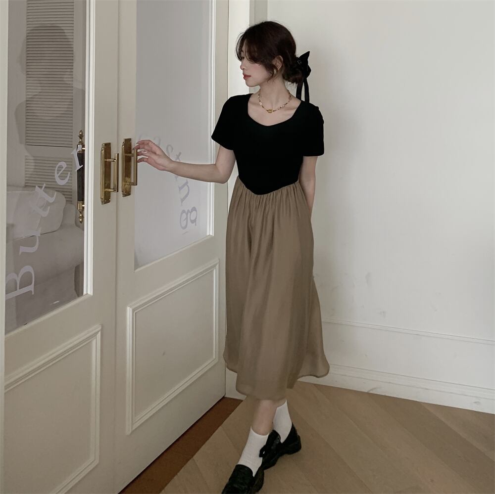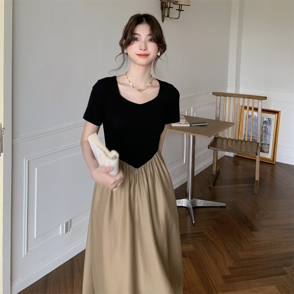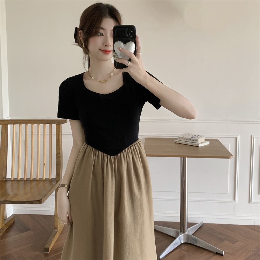 ワンピース夏服韓国ファッションウェストロングスカート 夏物 スクウェア ウエスト SYJ20918948485