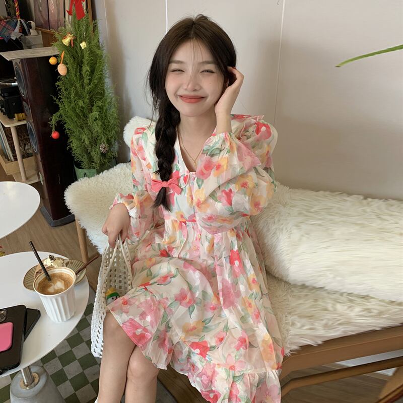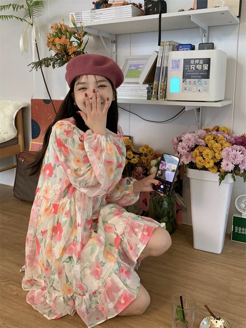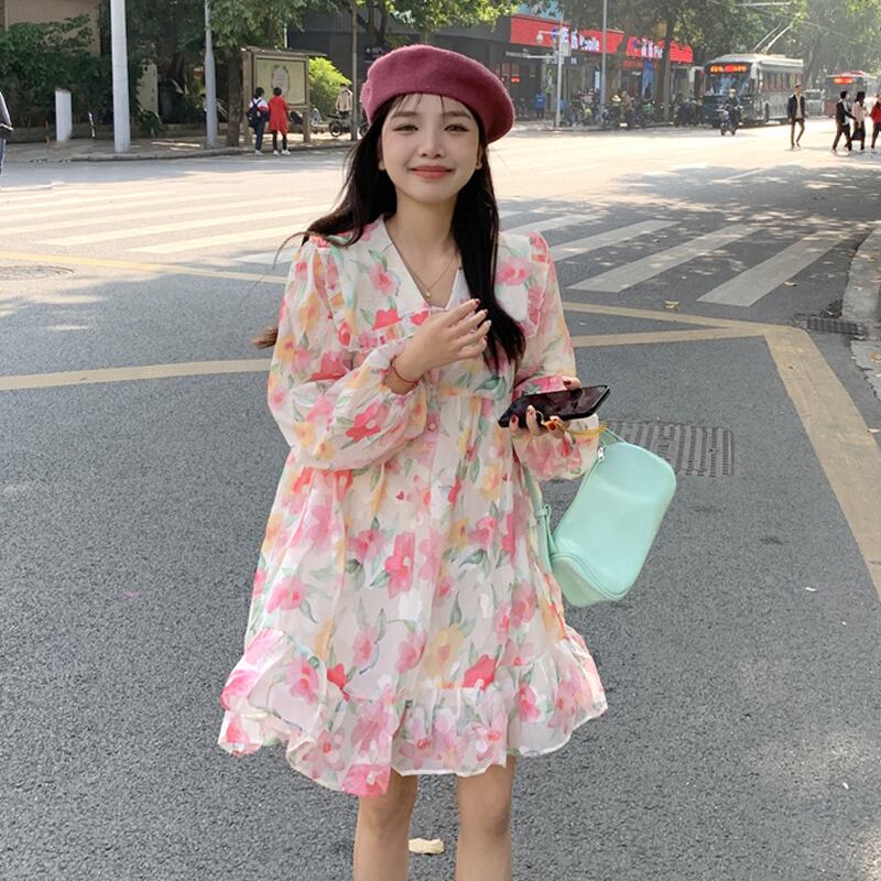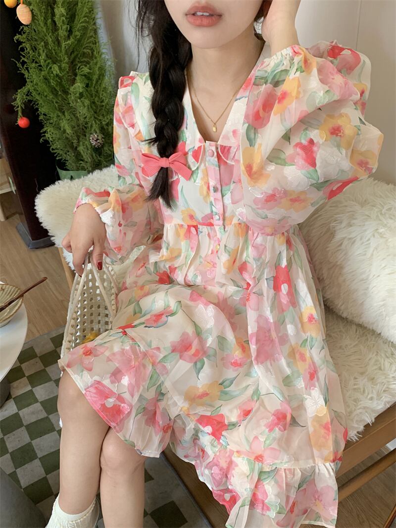 カラーフローラルワンピーススプリングスカート 春物 花柄 SYJ6885308065