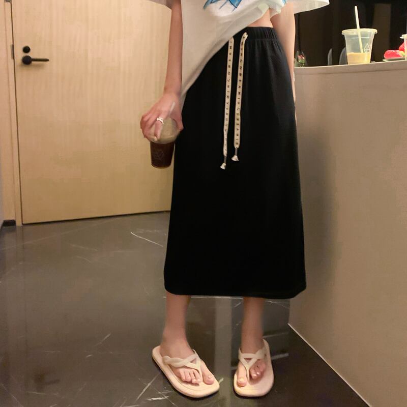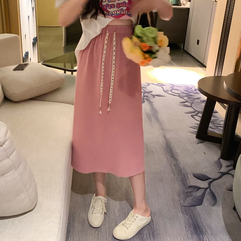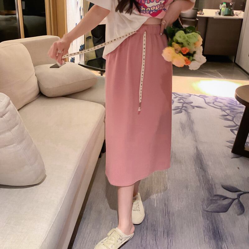 スカート 夏服Aラインハイウェストウェストスリムロング ピンク 夏物 ウエスト ミドル丈 SYJ50774659388