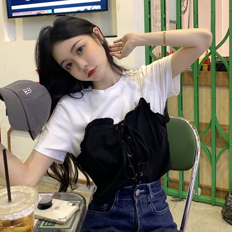 ショートトップス 夏服Tシャツ 大人ガーリー スウィート キュート カジュアル 夏物 SYJ65567875289