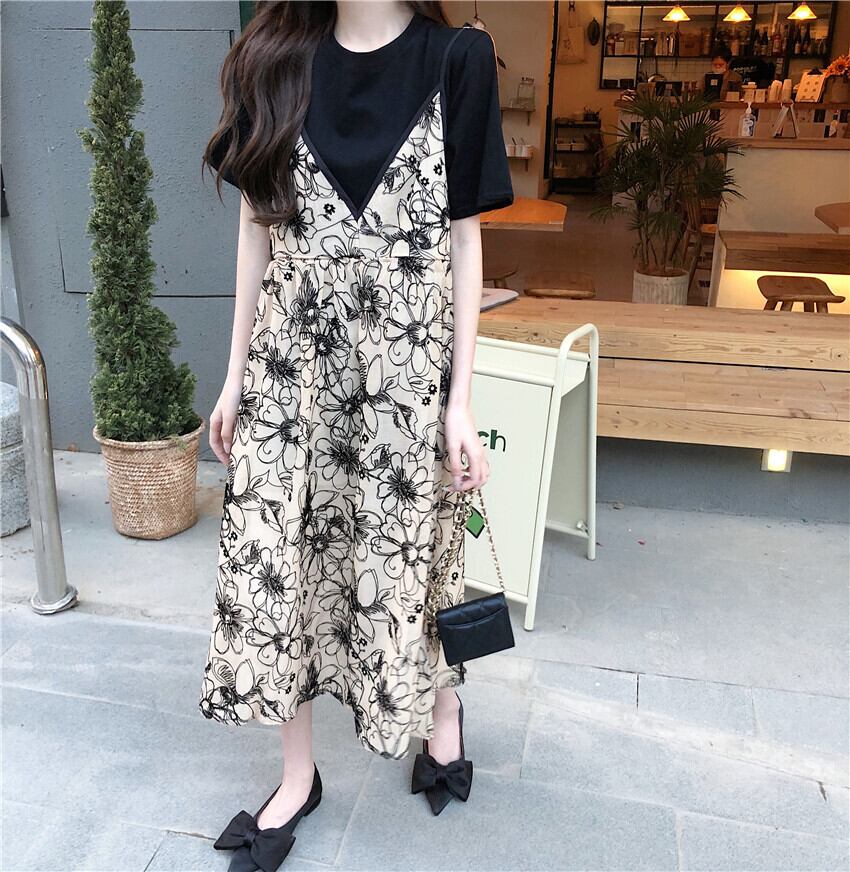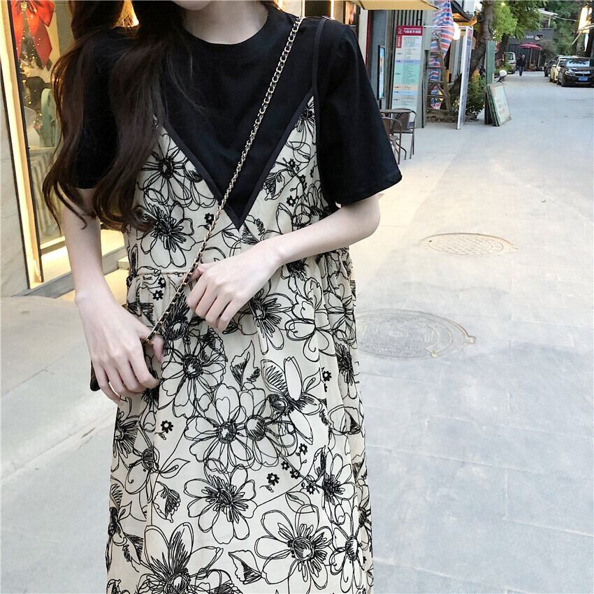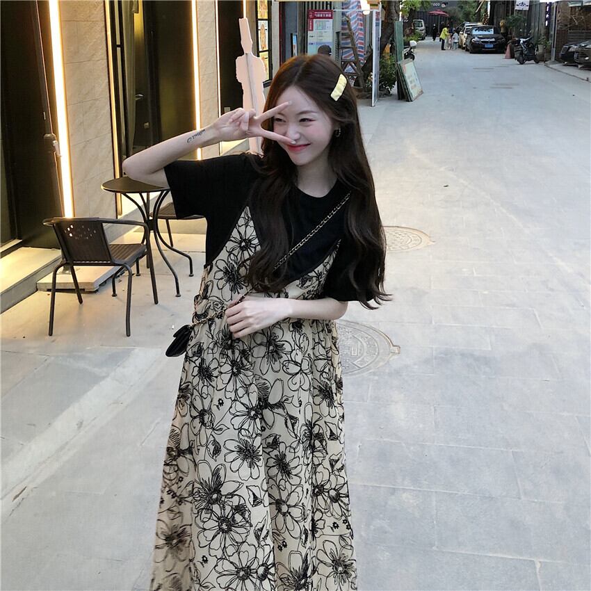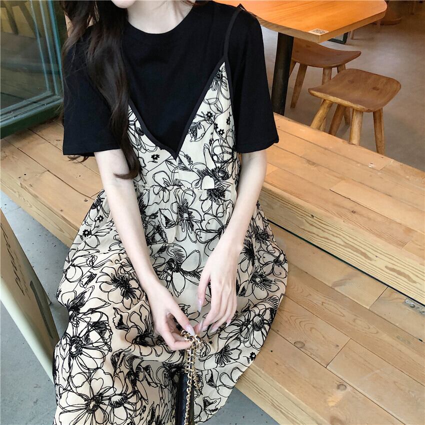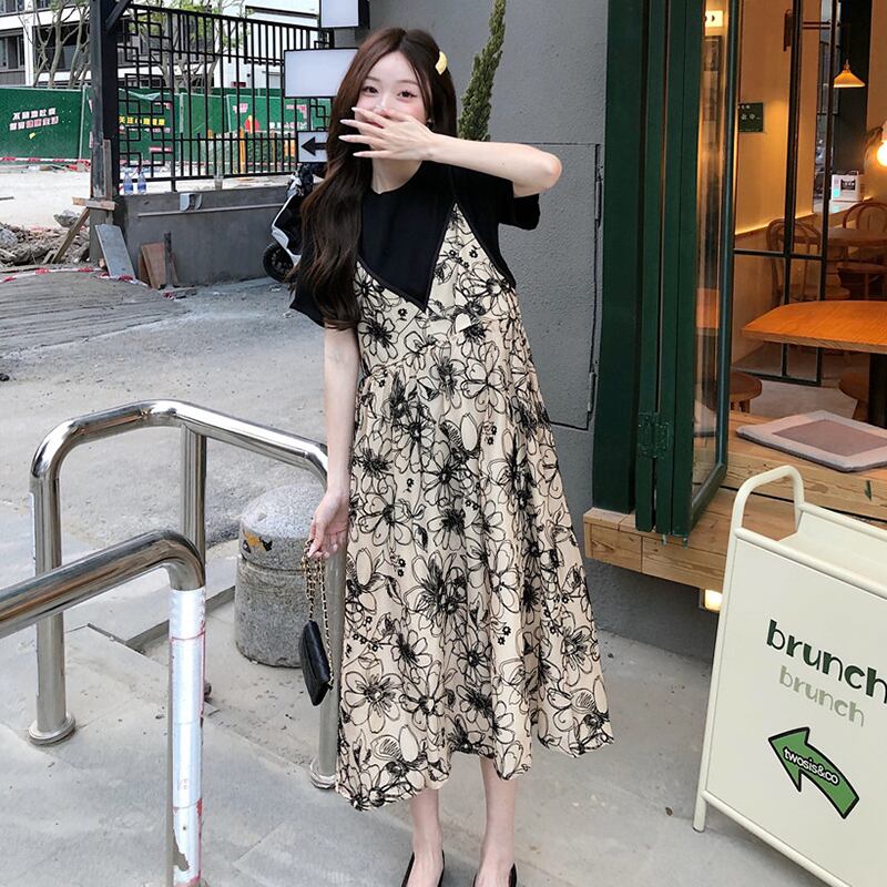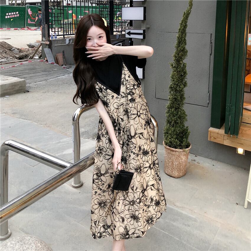 フローラルワンピース夏服スタンダードロングスカート レトロ 夏物 花柄 SYJ45514821218