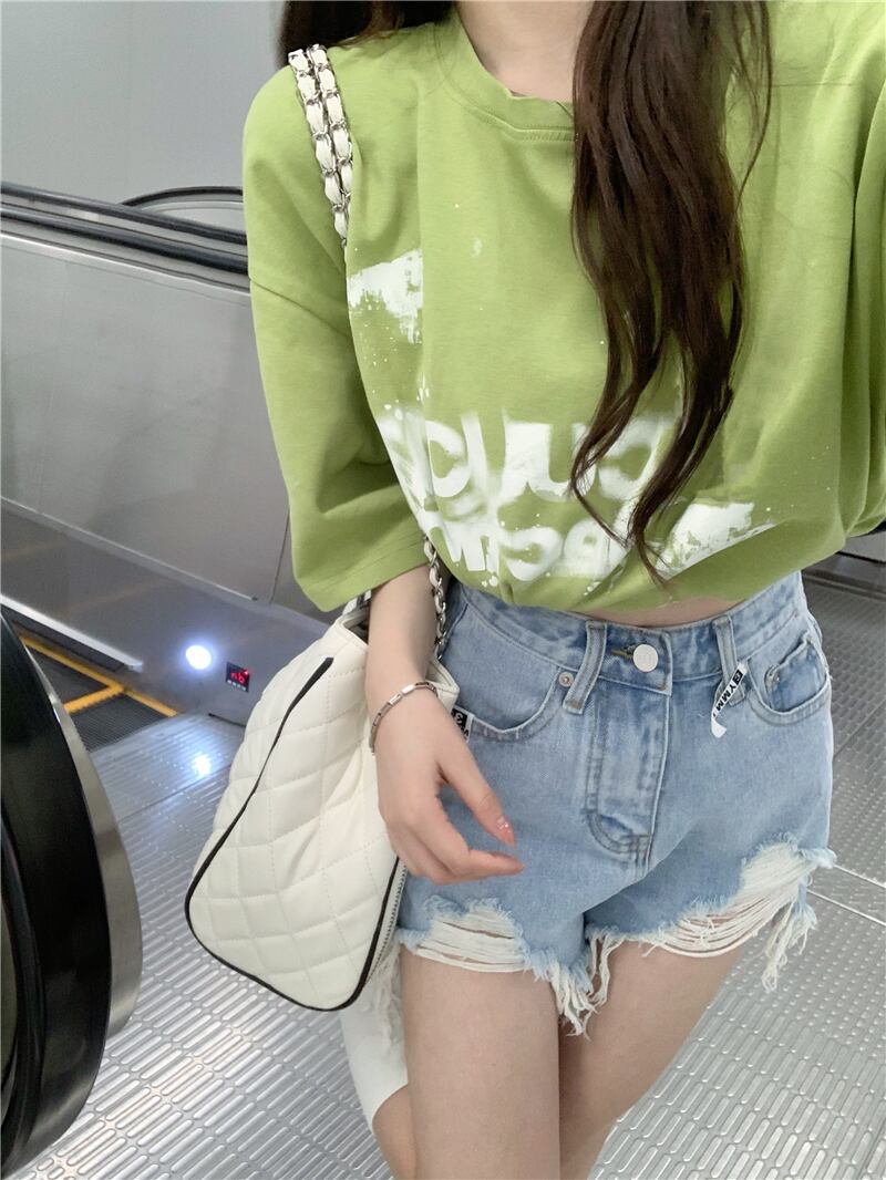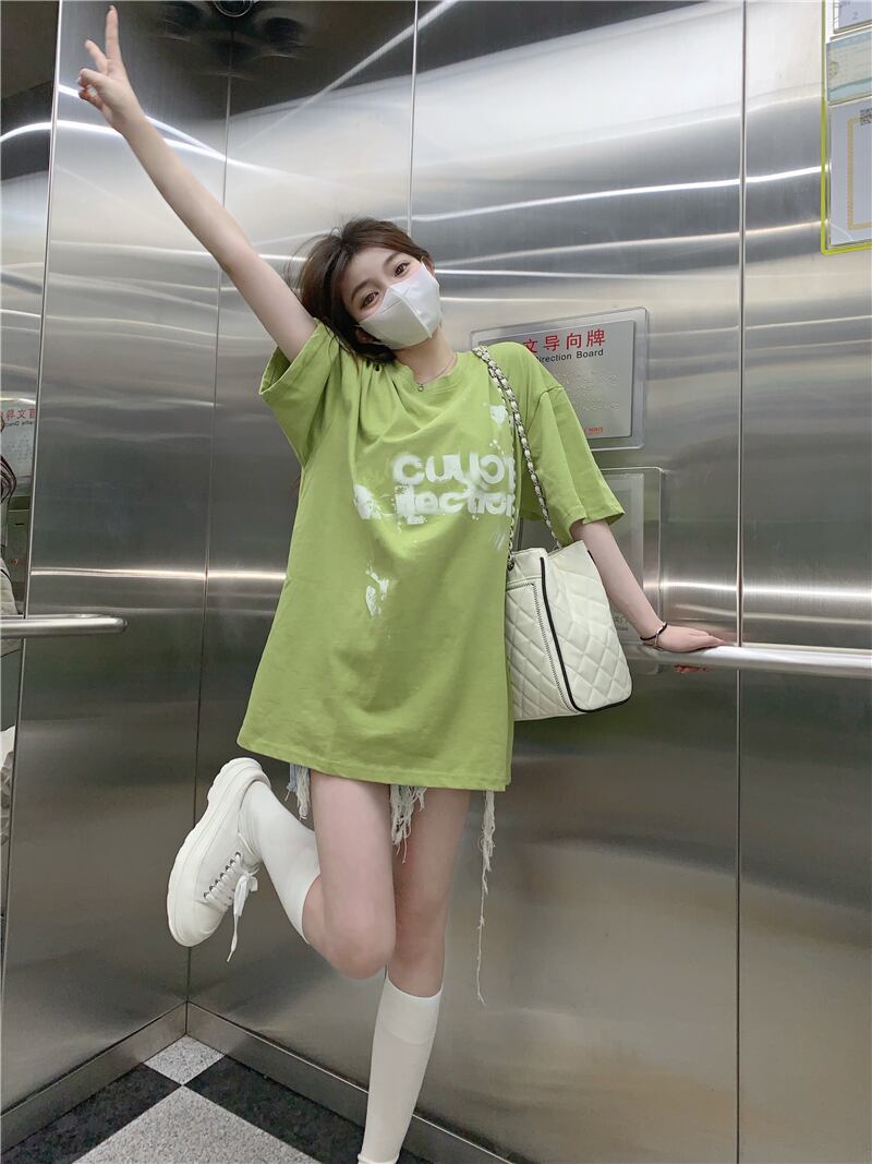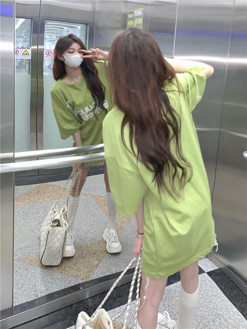 グリーンTシャツ夏服ルーズトップス 夏物 SYJ58047779124