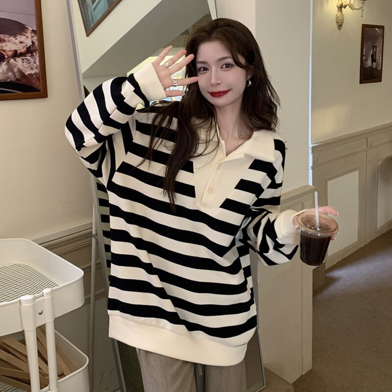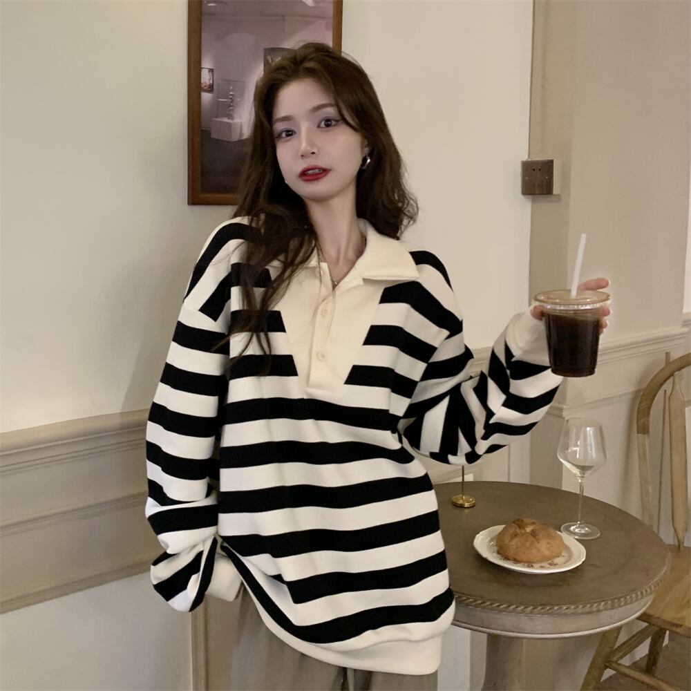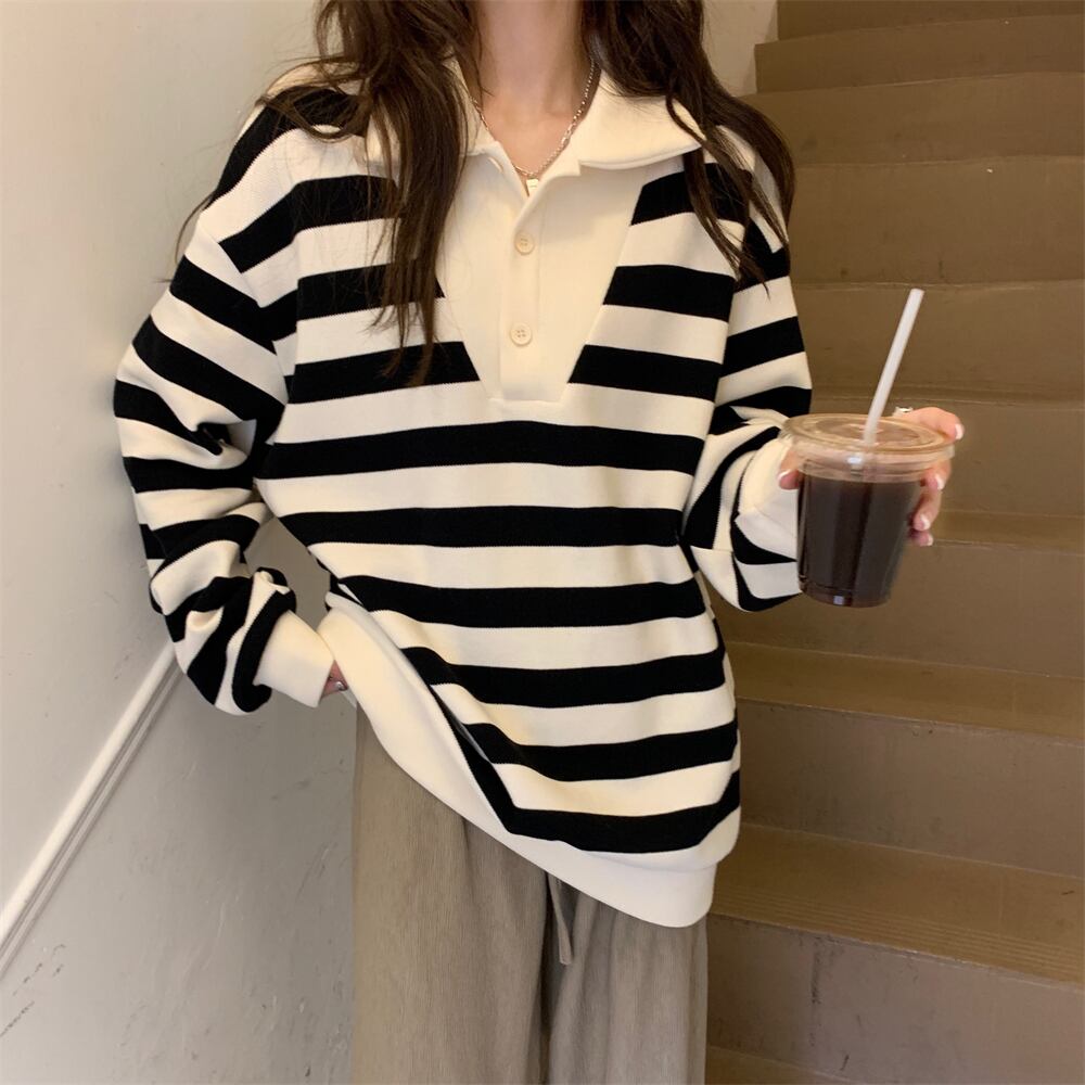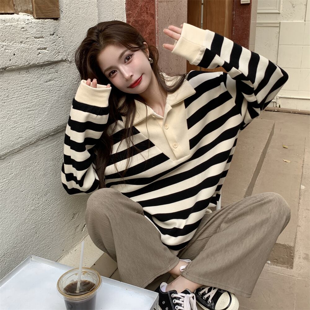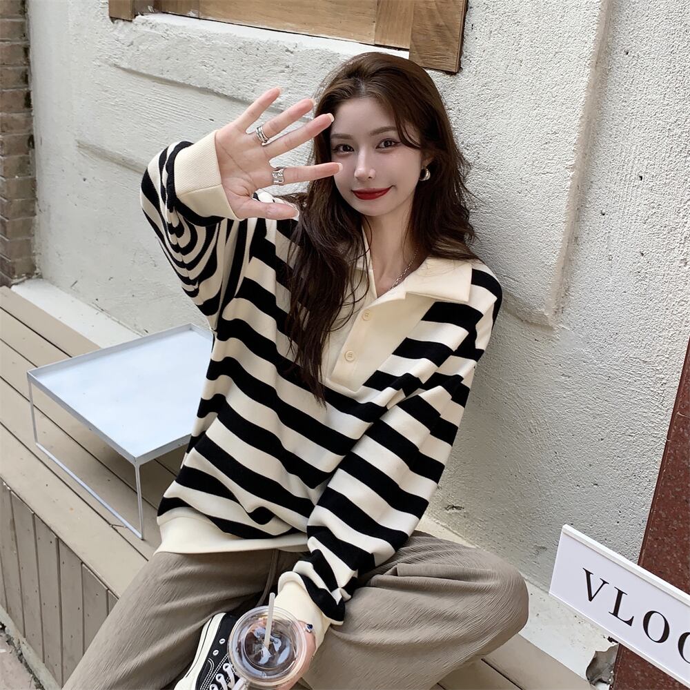 ストライプカラーセーター スプリングスタイルスタンダードルーズトップス レトロ 春物 SYJ82200866105