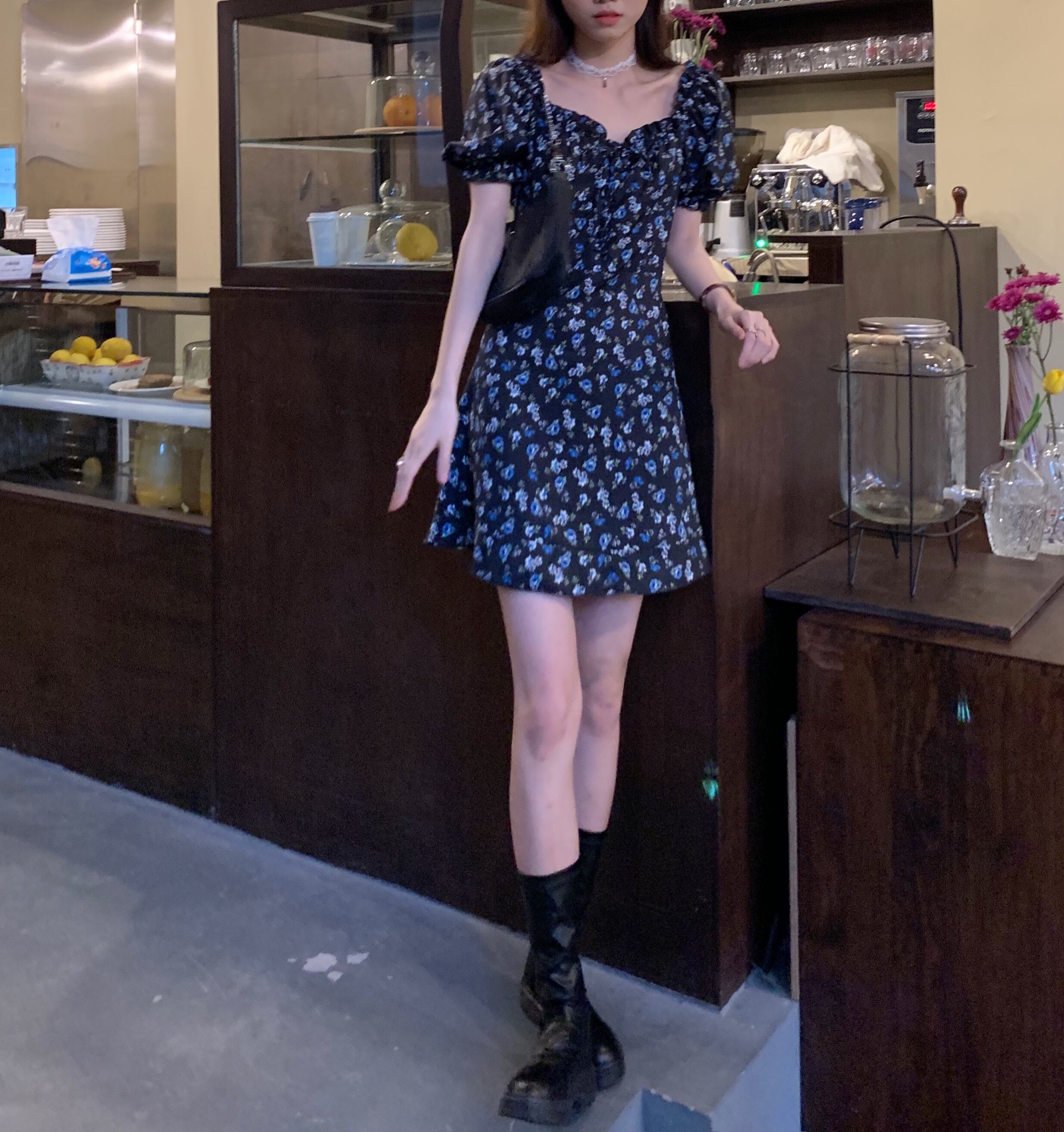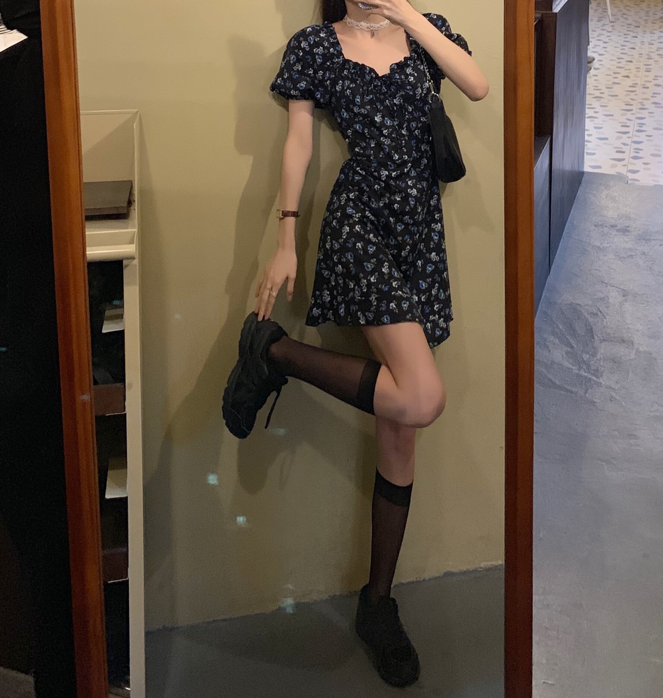 ショートフローラルワンピース夏服スタンダードスカート レトロ 夏物 花柄 SYJ25696028513