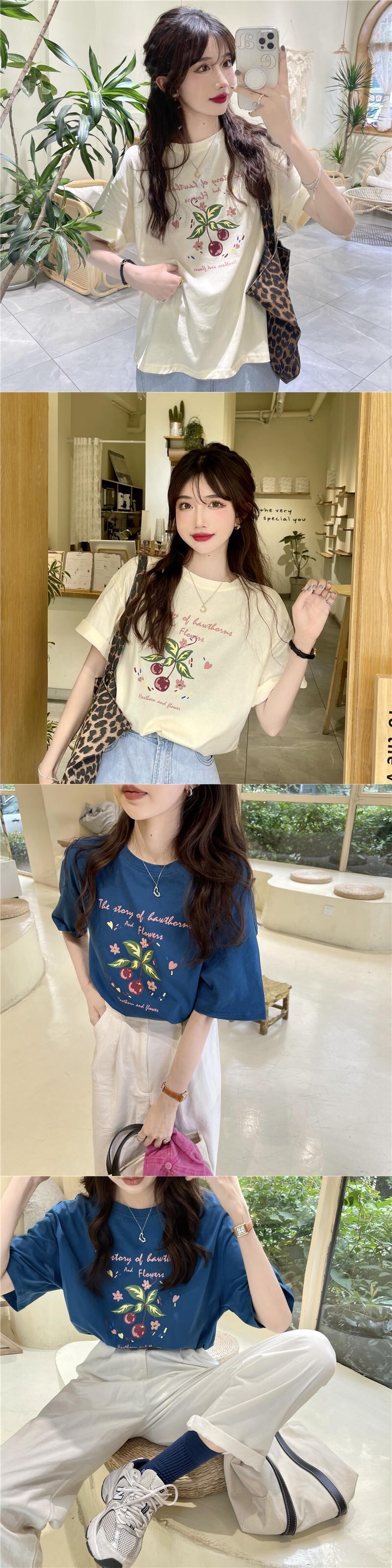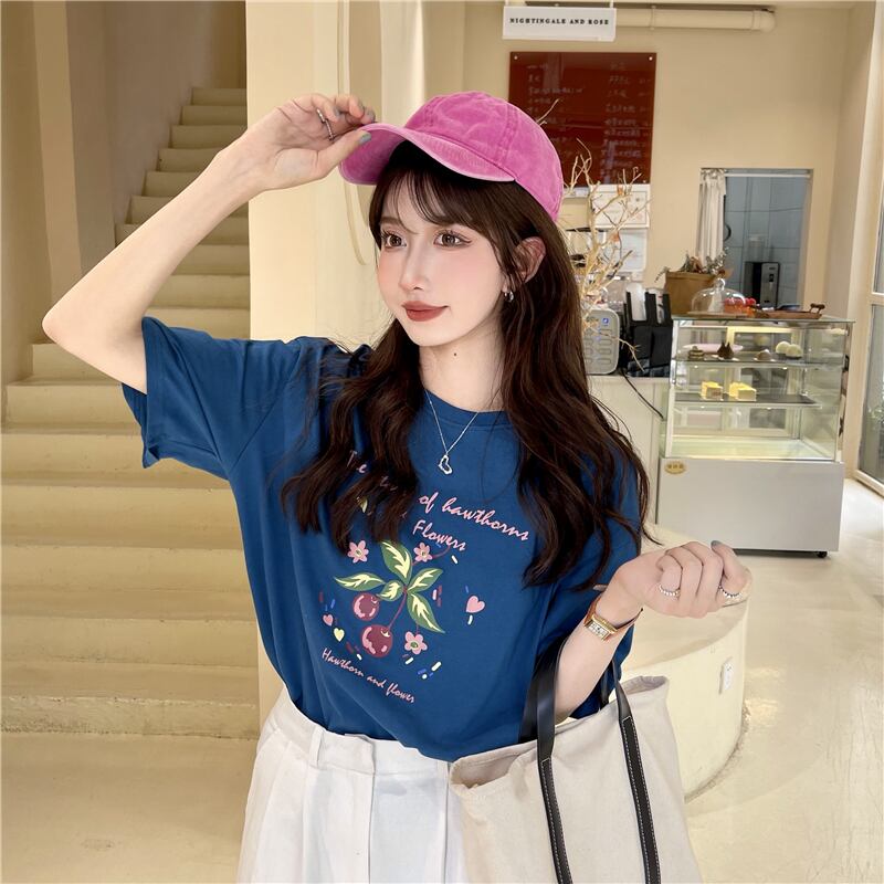 ブルーTシャツ夏服スタンダードルーズトップス レトロ 夏物 SYJ35771841815