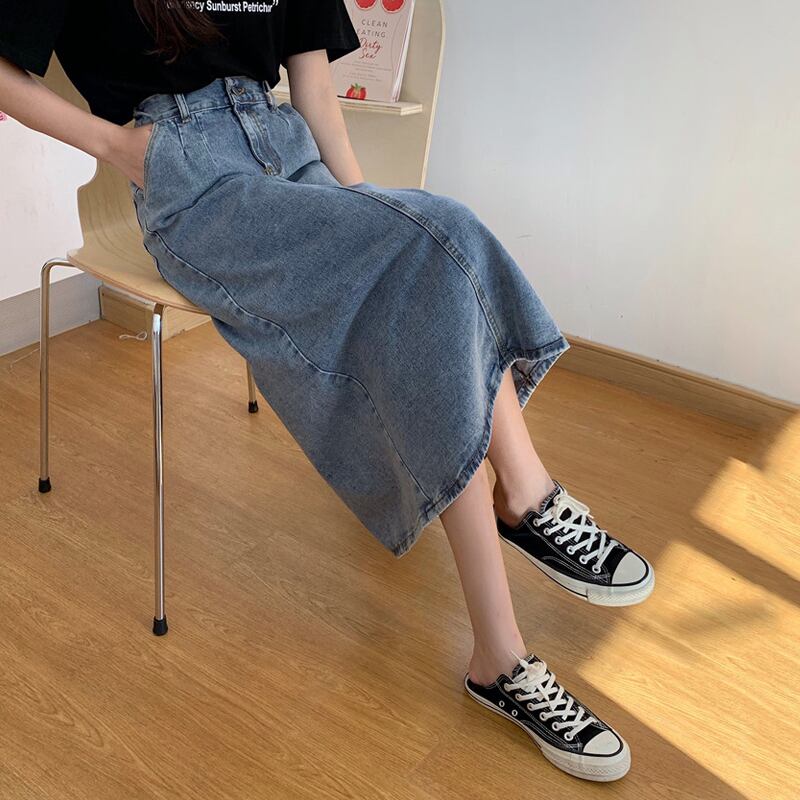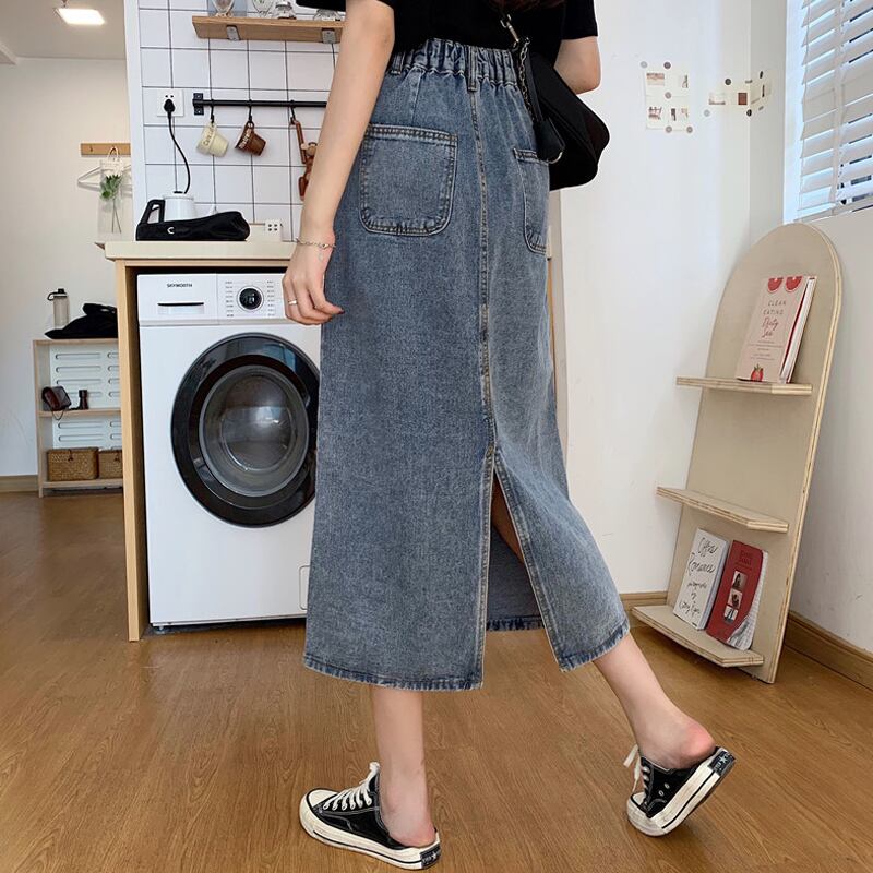 ブルースリットスカート 夏服Aラインロング 夏物 ミドル丈 SYJ28577931970