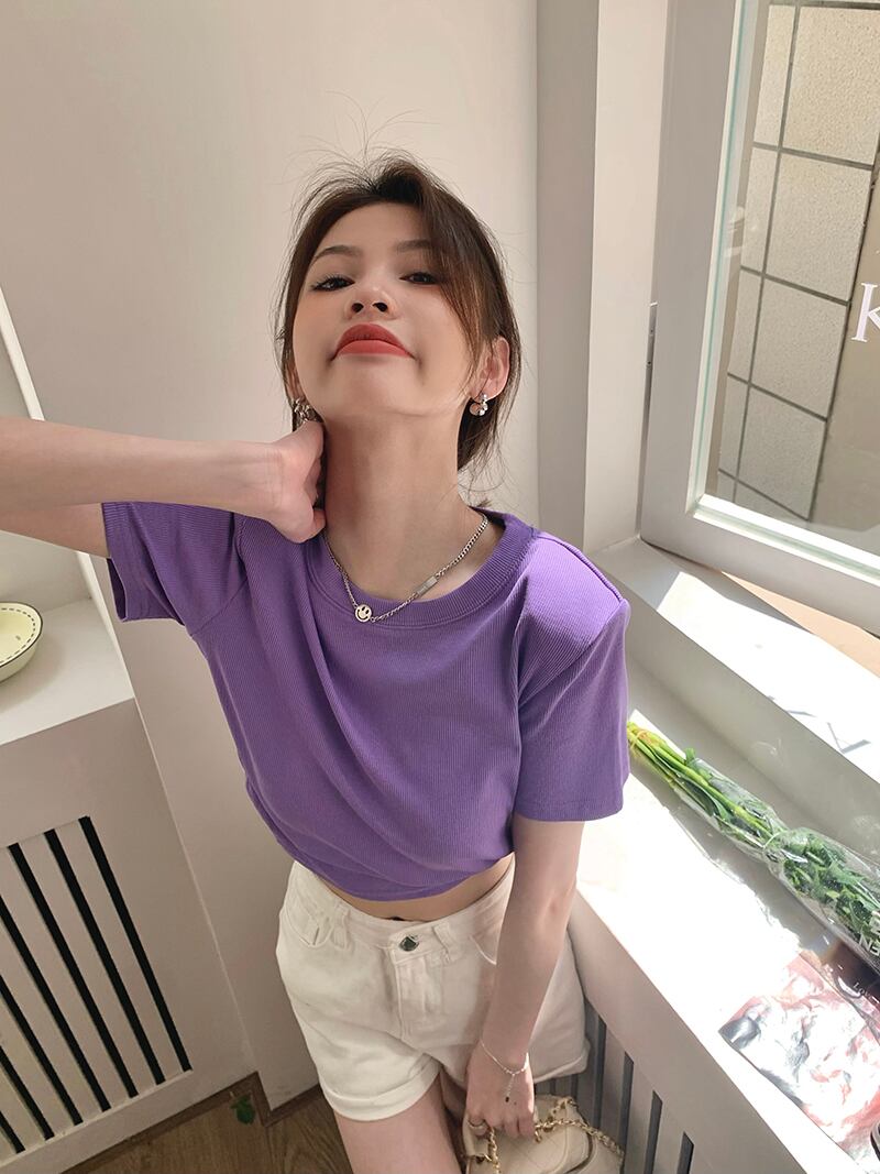 バックレスショートTシャツ夏服トップス 夏物 パープル SYJ81174553746