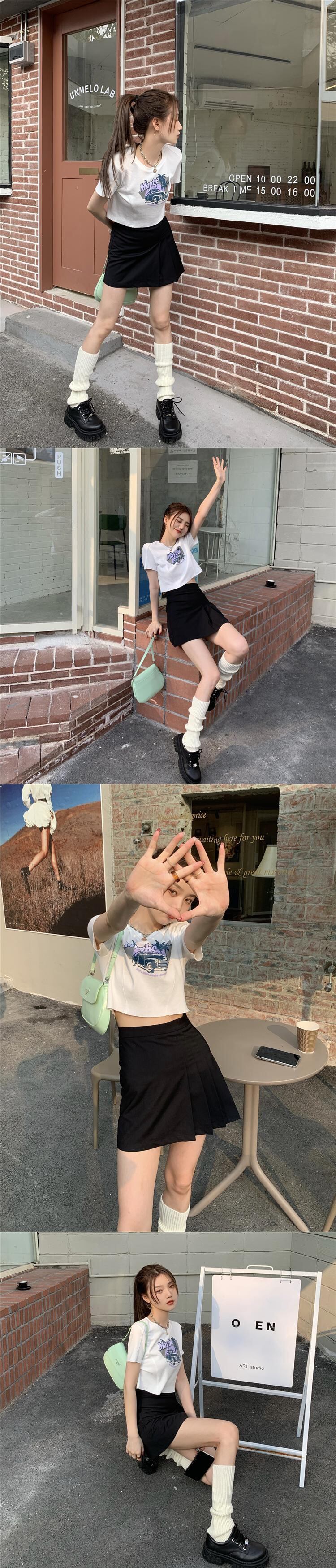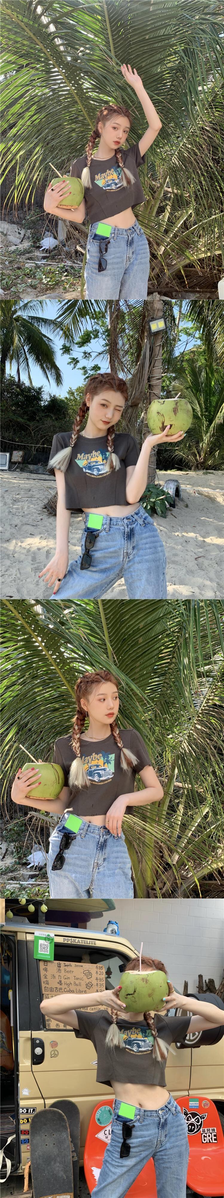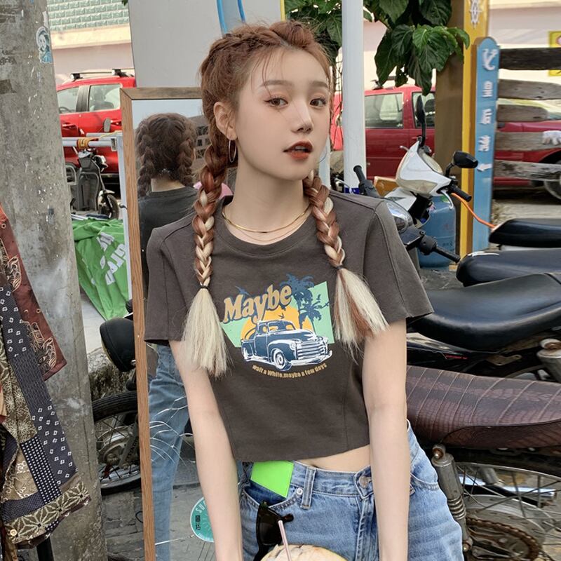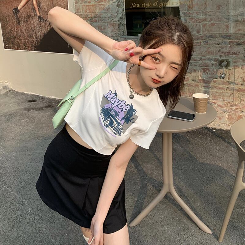 ショートTシャツレディース夏服スタンダードハイウェストウェストスリムトップス NEW コットン レトロ 夏物 ウエスト SYJ12887170137