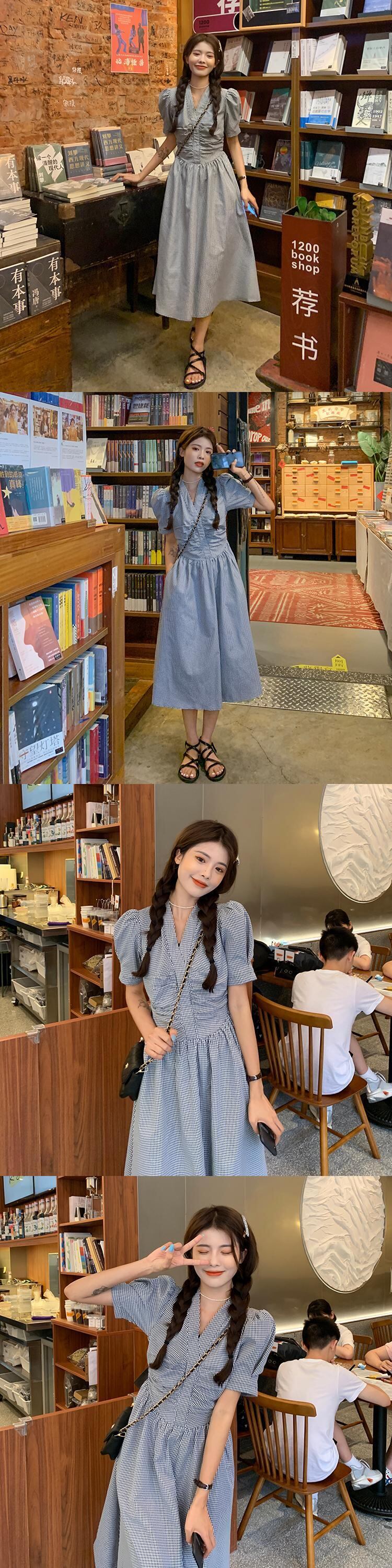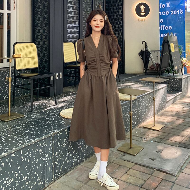 Vネックワンピース夏服韓国ファッションウェストロングスカート 夏物 ウエスト SYJ23914279495