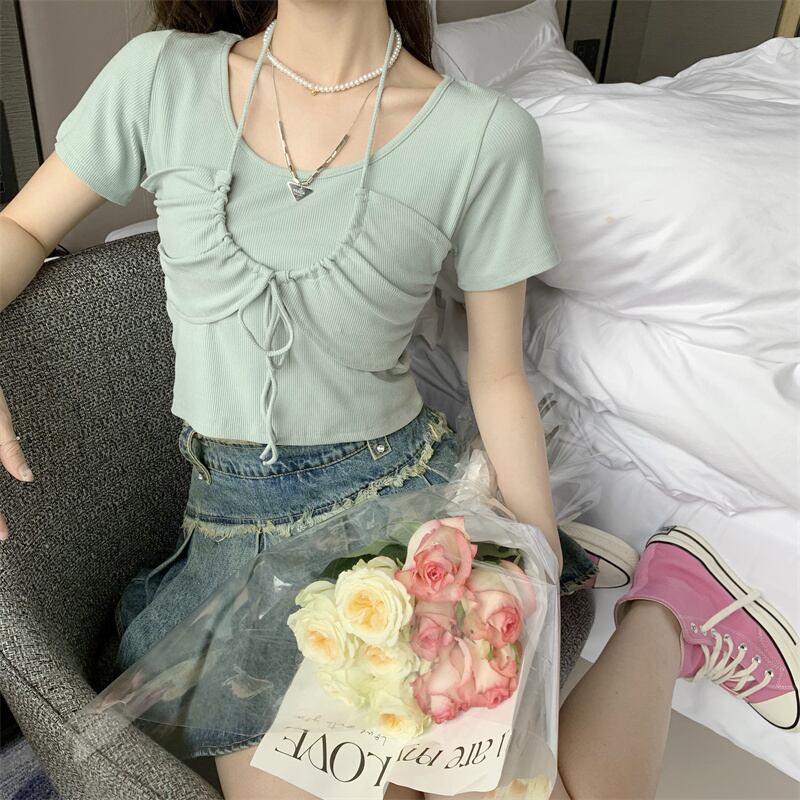 ショートTシャツ夏服スリムトップス NEW 大人ガーリー スウィート キュート カジュアル 夏物 SYJ63545856123