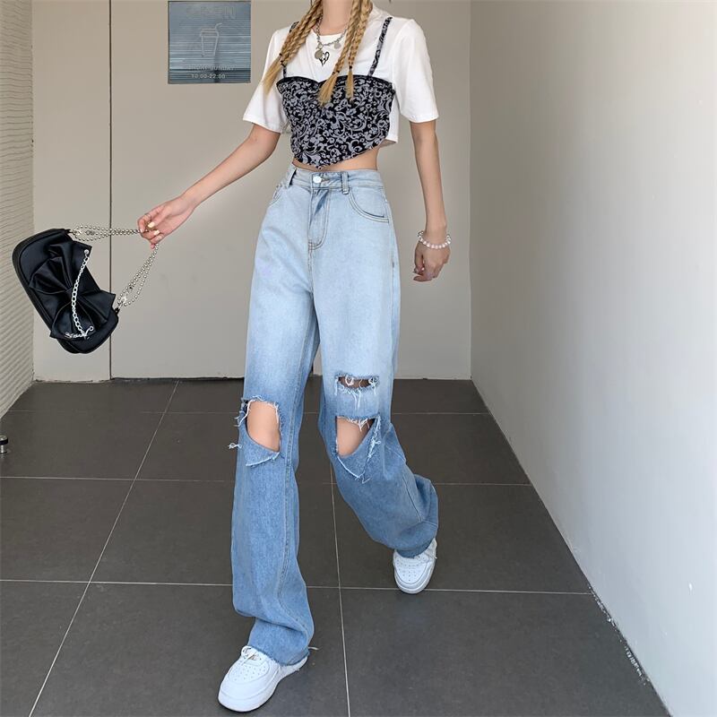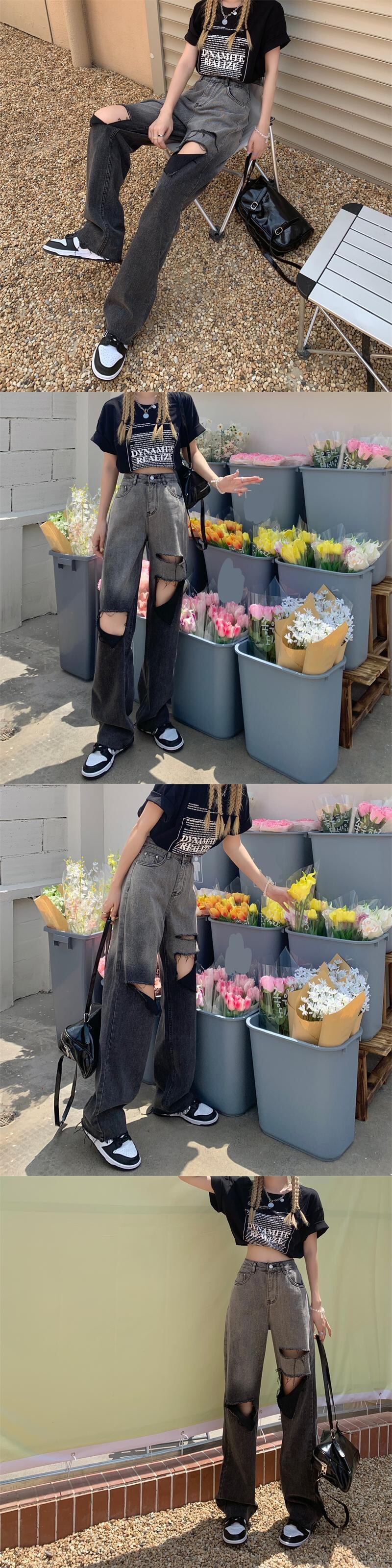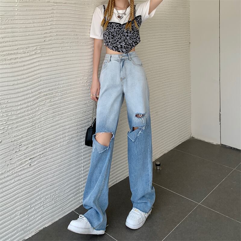ジーンズ スプリングハイウェスト薄手パンツ ルーズ 春物 ウエスト SYJ1986486924