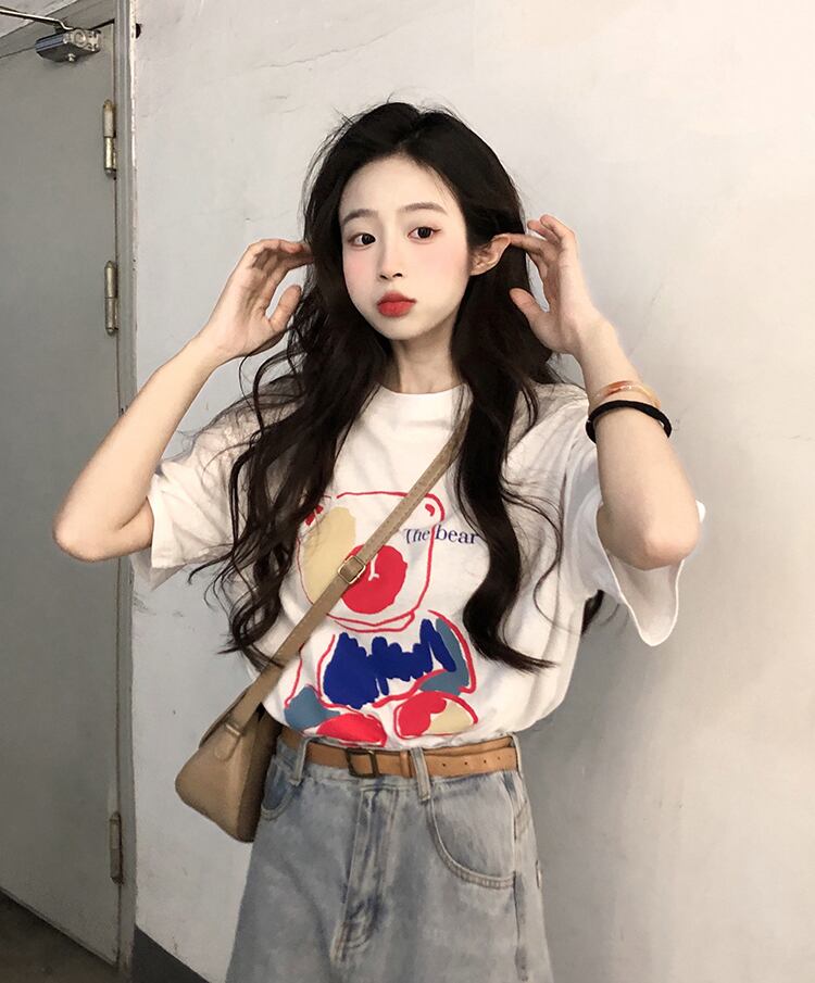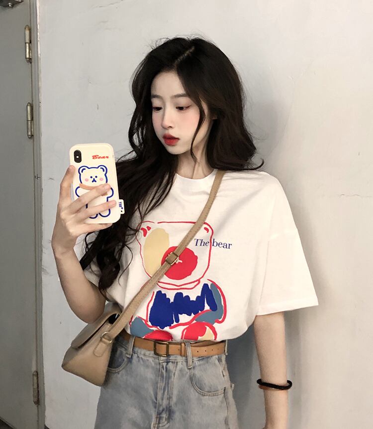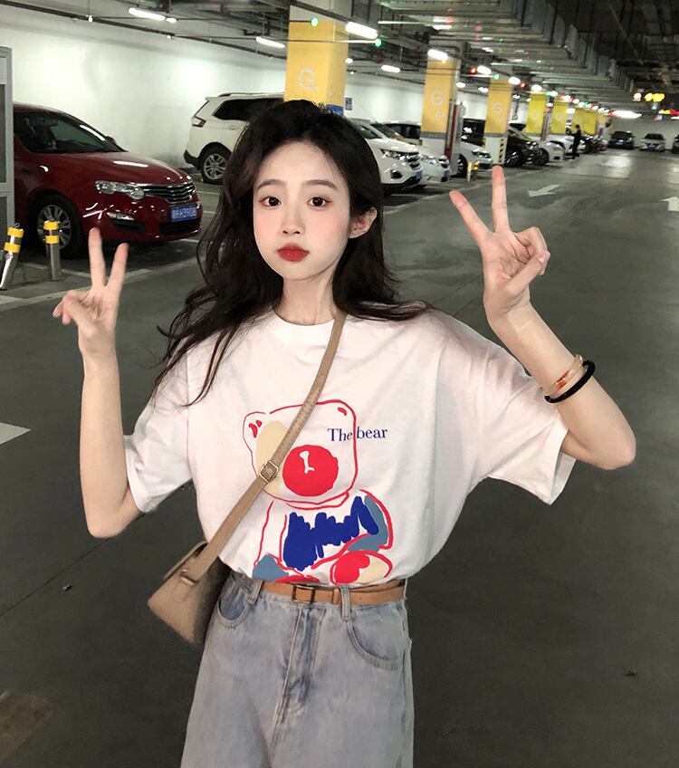 ホワイトTシャツ夏服ルーズ韓国ファッショントップス コットン 夏物 スタイル SYJ50211389498