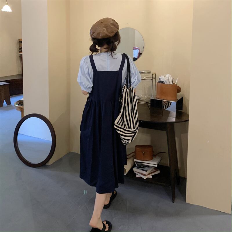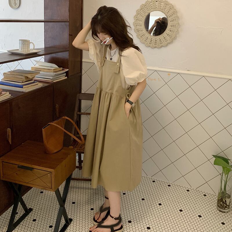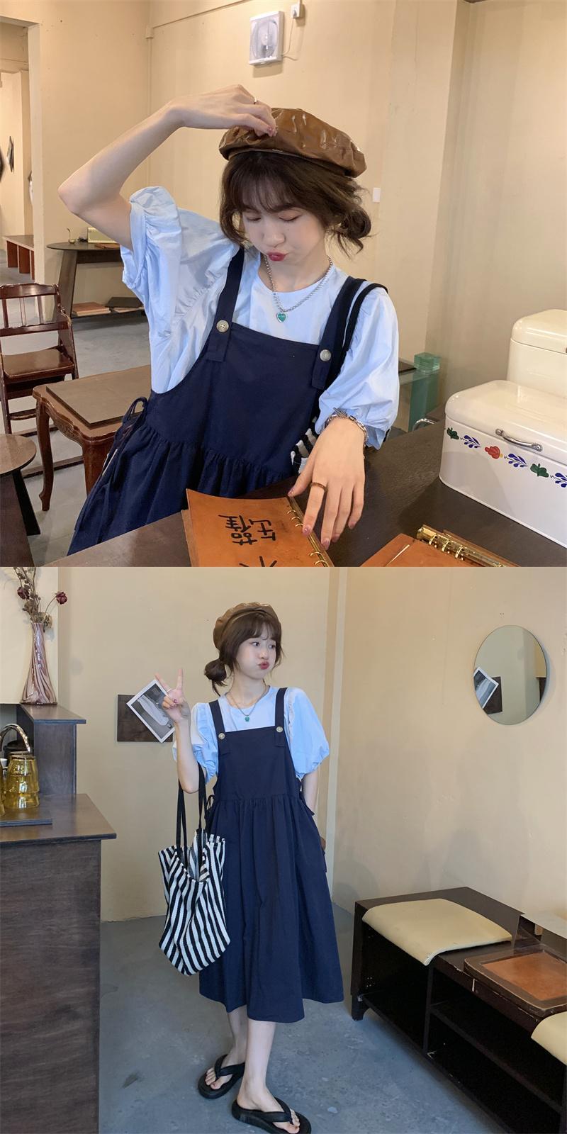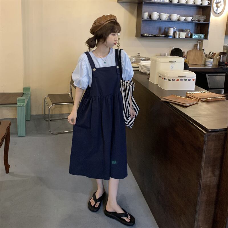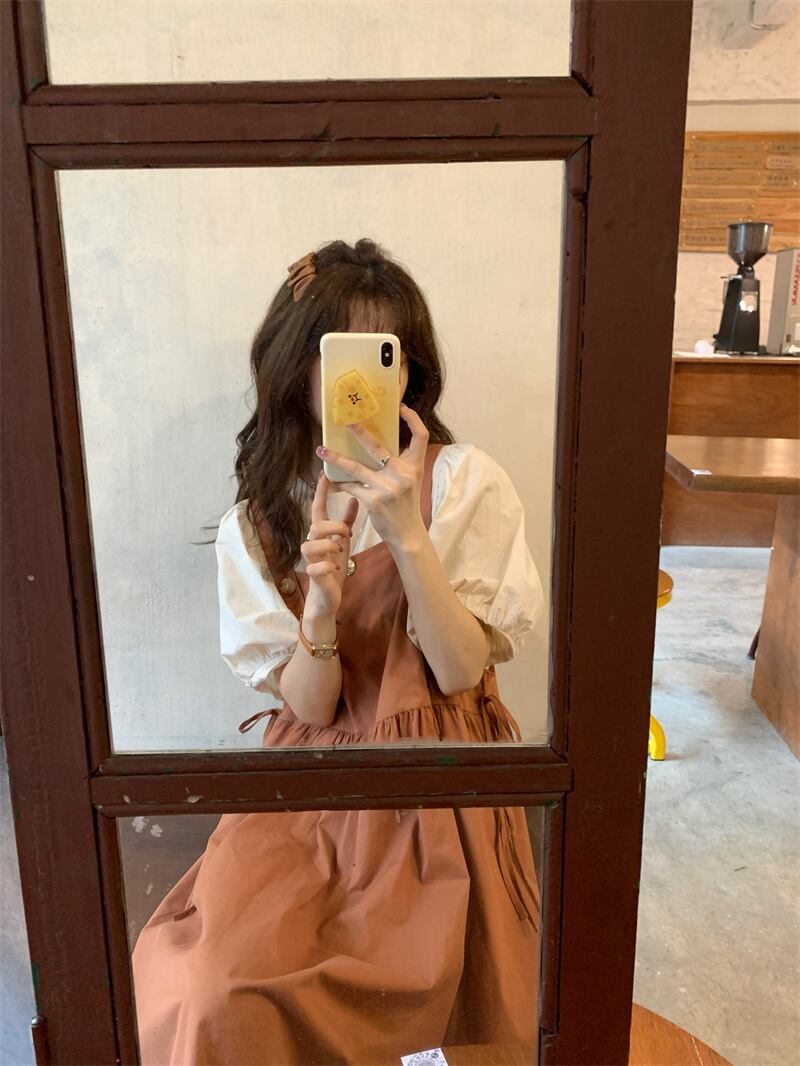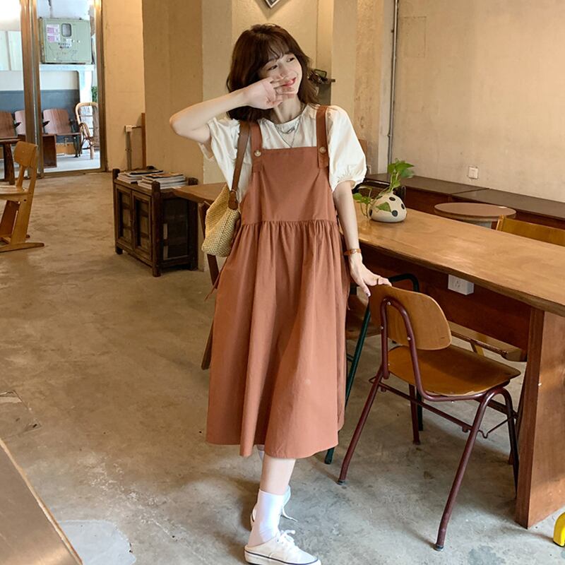 色:ワンピースアプリコットトップ,ブルートップシングルピース,カーキストラップドレスワンピース,ダークブルーのサスペンダースカートワンピース,キャラメルサスペンダースカートワンピース