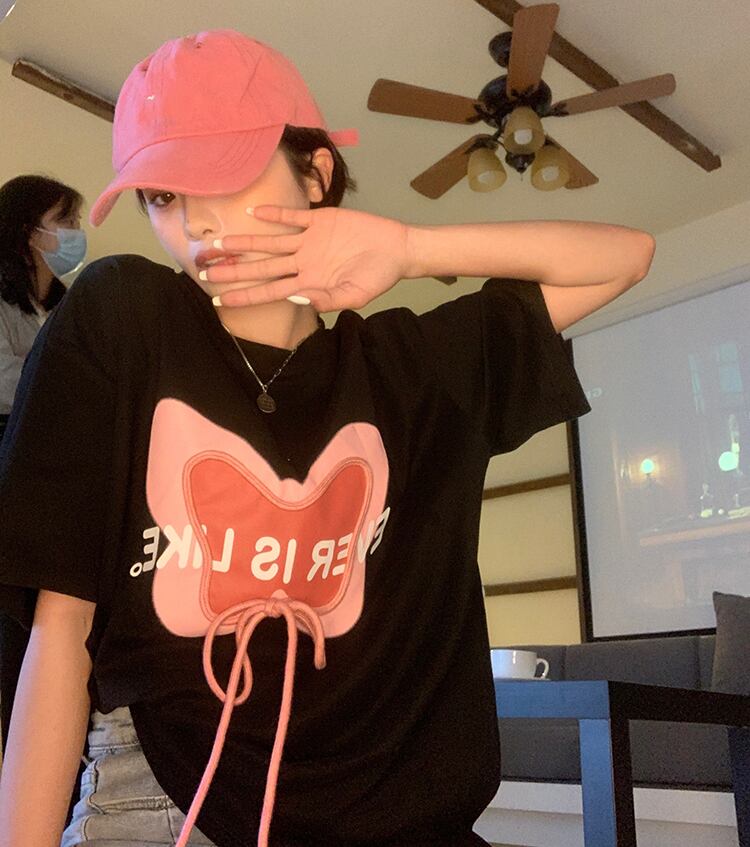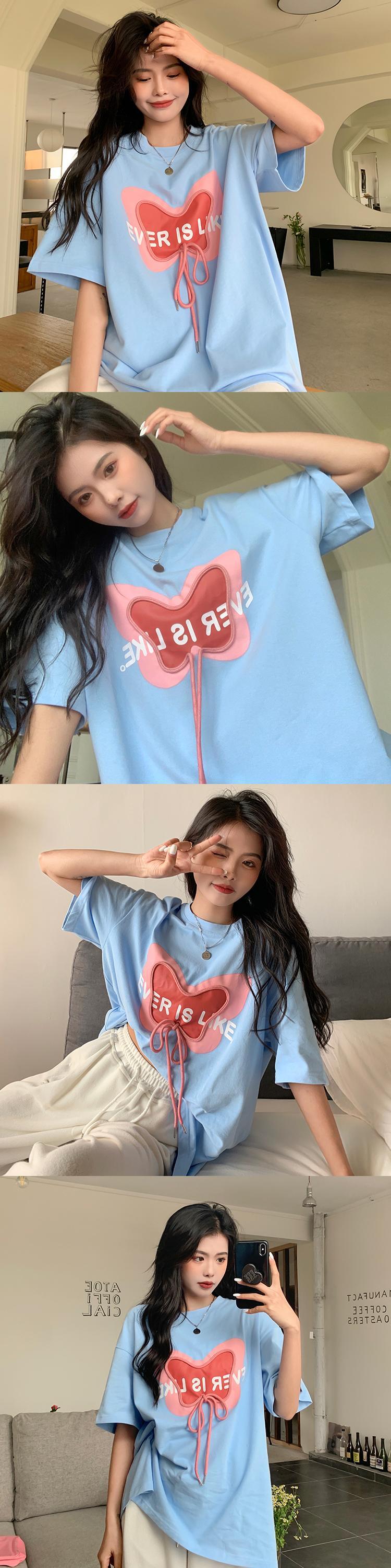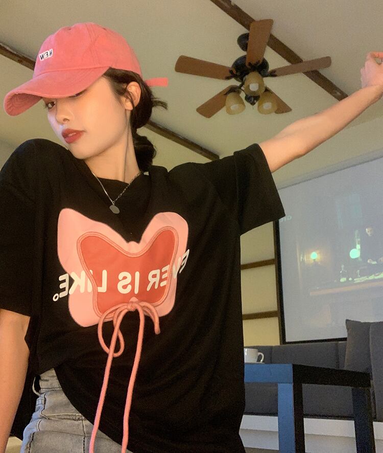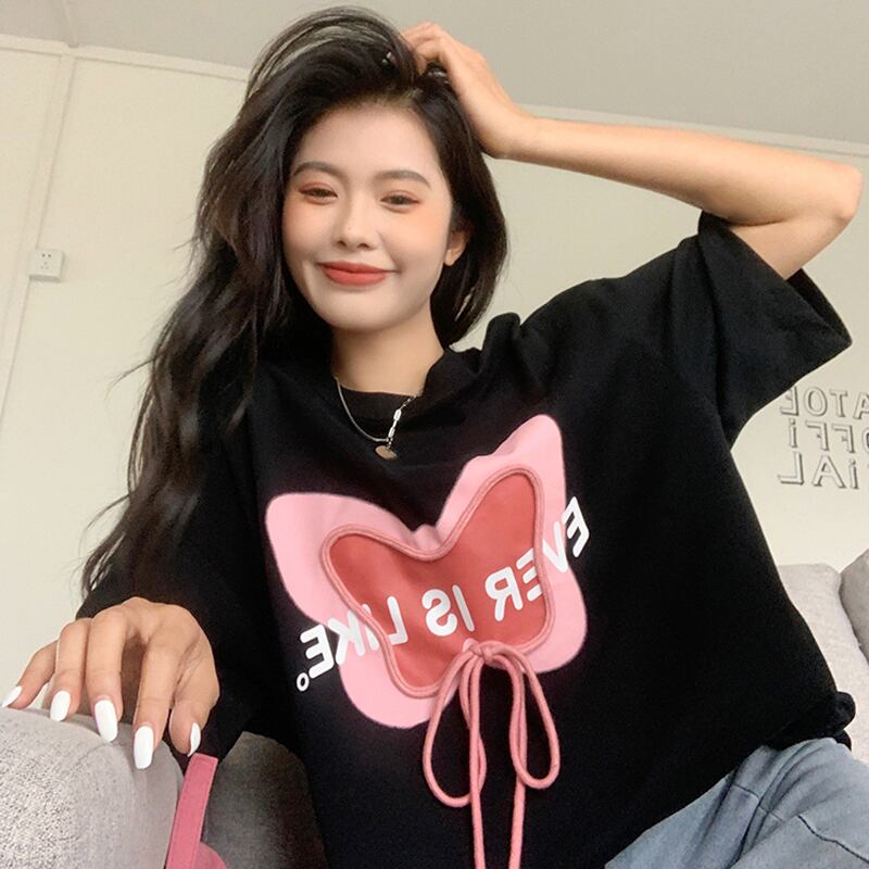 ブラックTシャツ夏服ルーズリボントップス NEW 夏物 SYJ76504500076