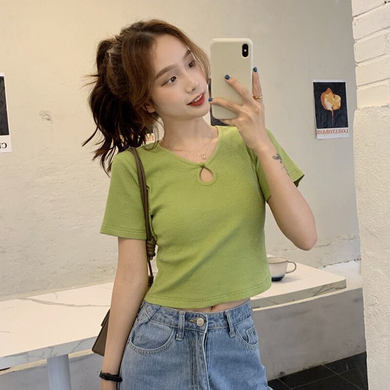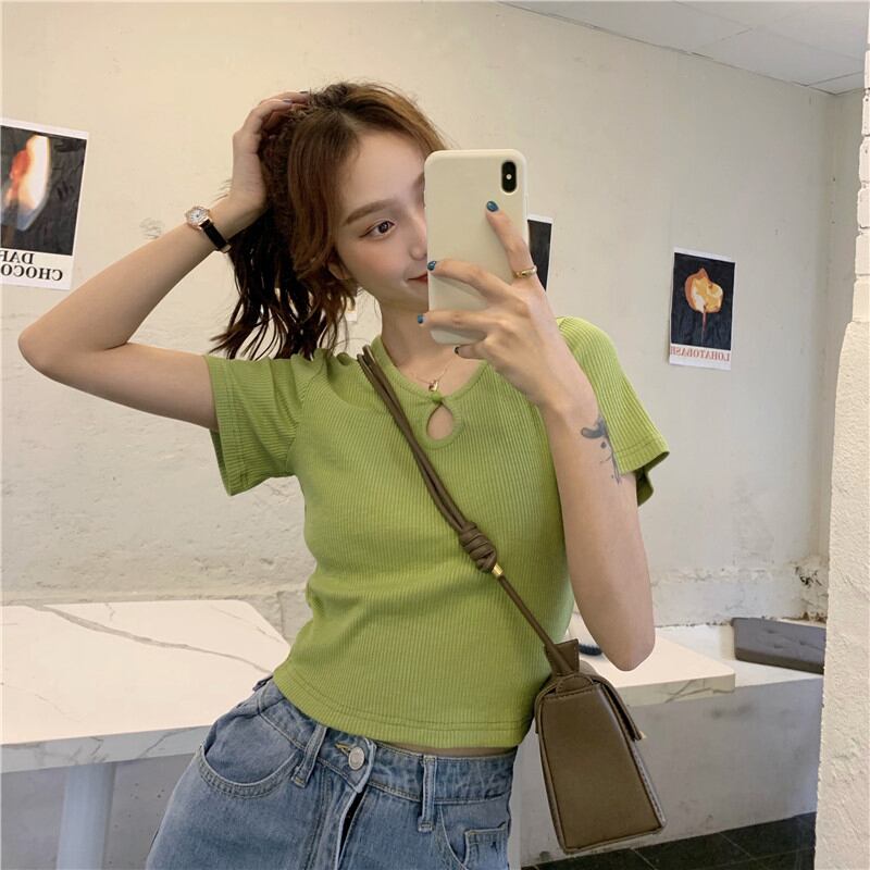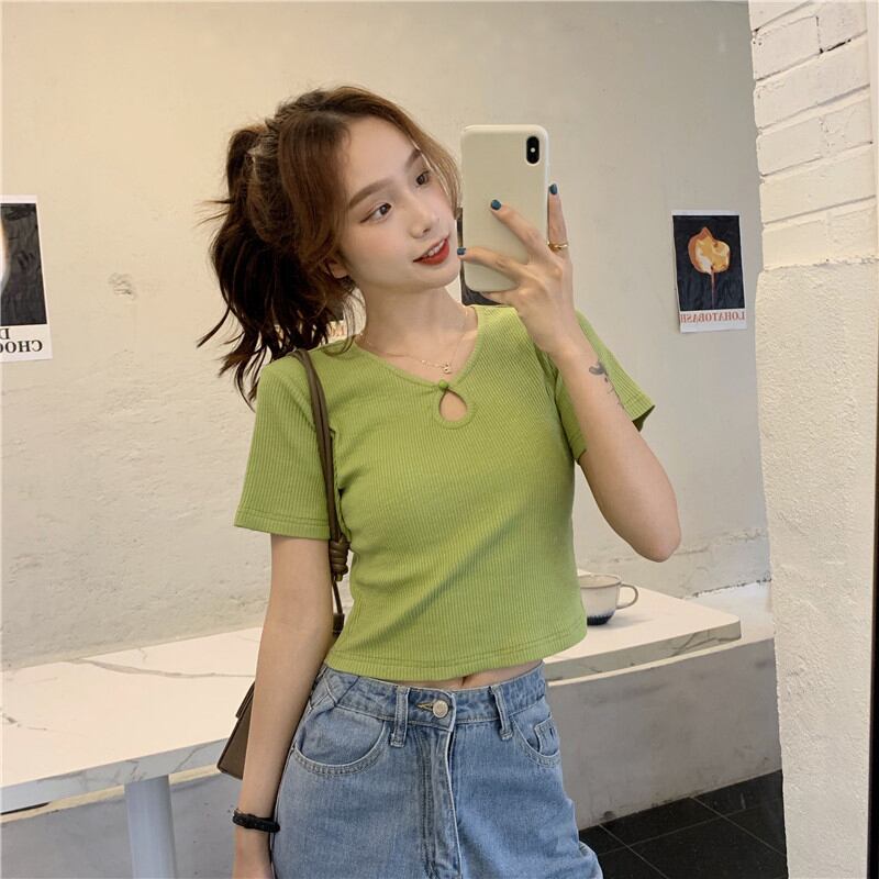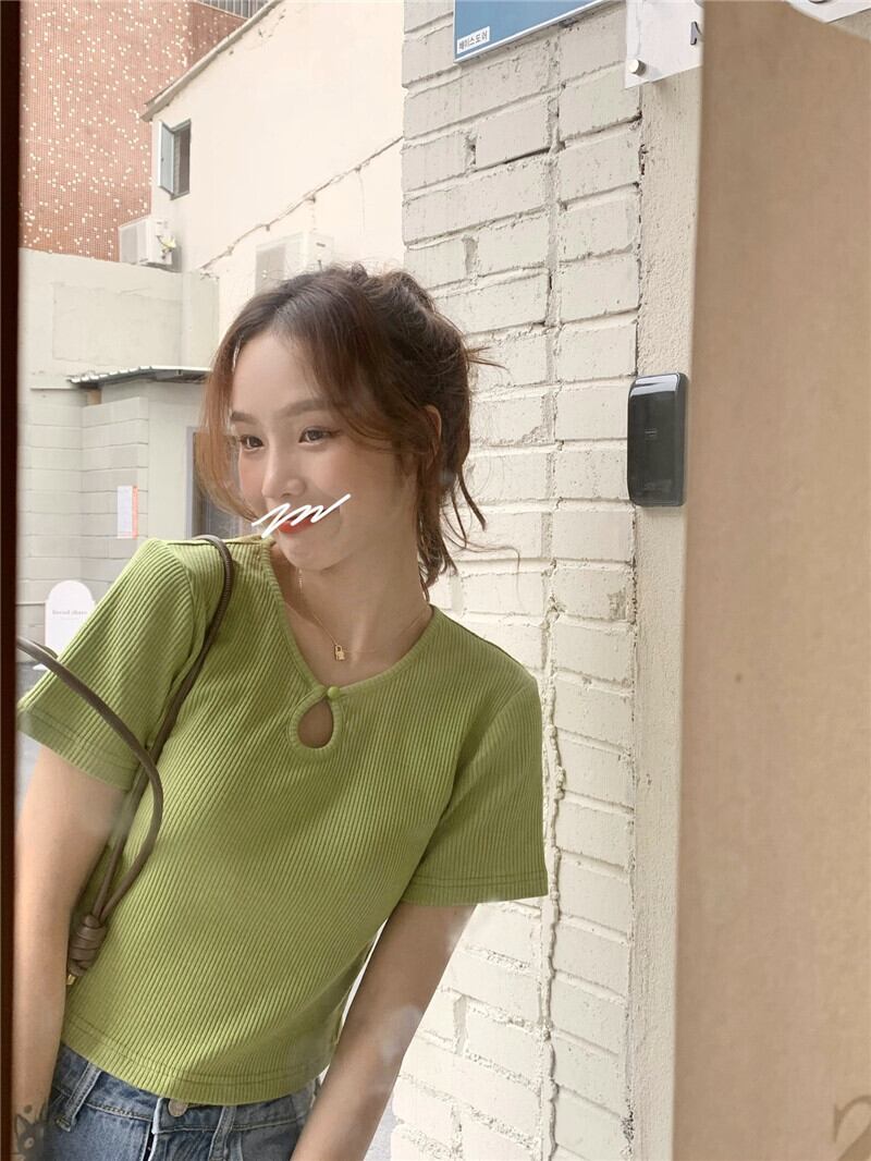 グリーン半袖スリーブTシャツ夏服トップス ショート ハーフスリーブ 大人ガーリー スウィート キュート カジュアル 夏物 ピュア SYJ19595211877