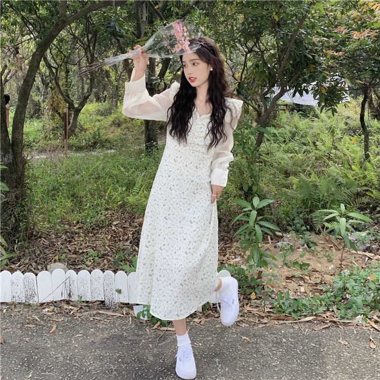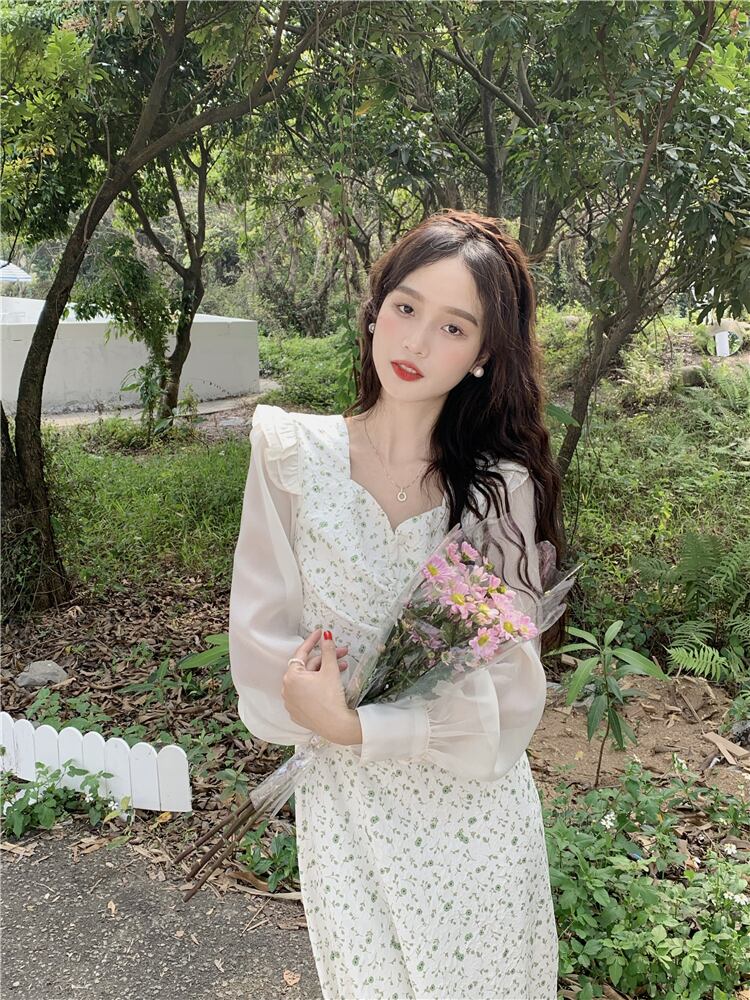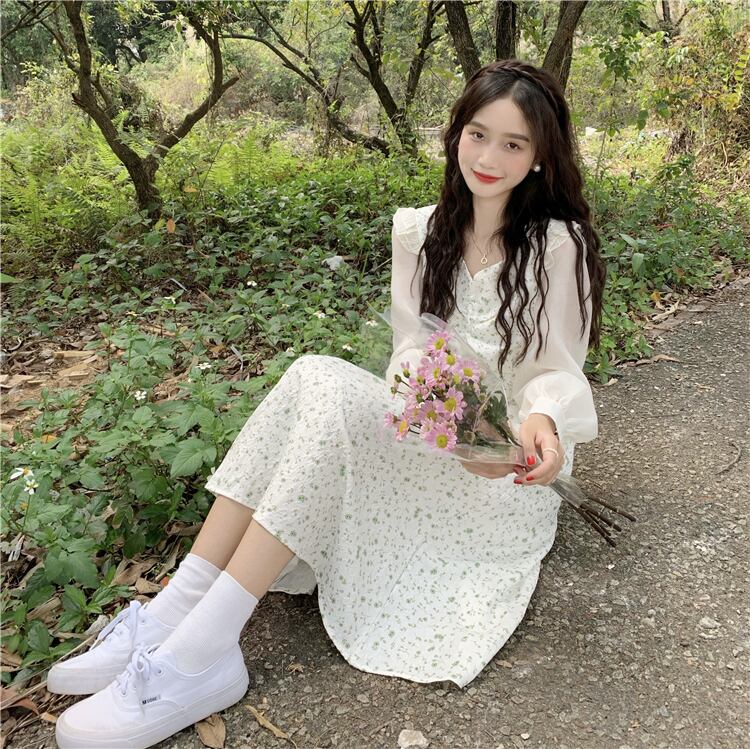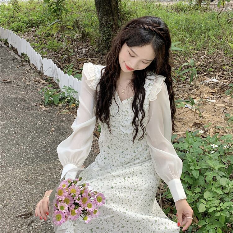 フローラルVネックワンピースレディーススプリングスカート 大人ガーリー スウィート キュート カジュアル 春物 花柄 SYJ58606198829
