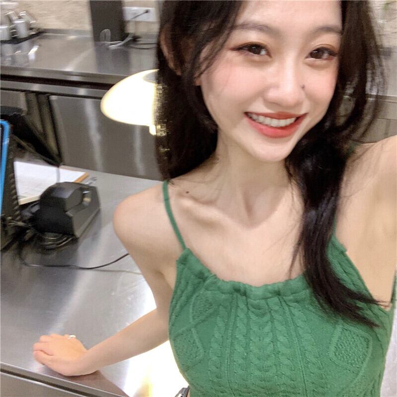 スタイルグリーンニット夏服ショートゆったりトップス 大人ガーリー スウィート キュート カジュアル 夏物 SYJ62699533012