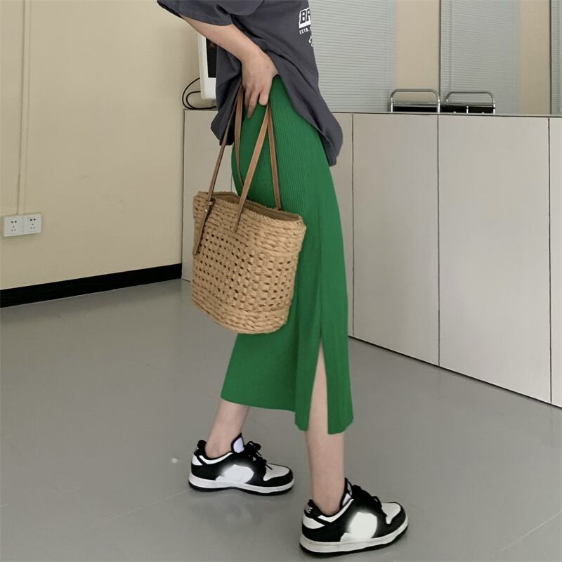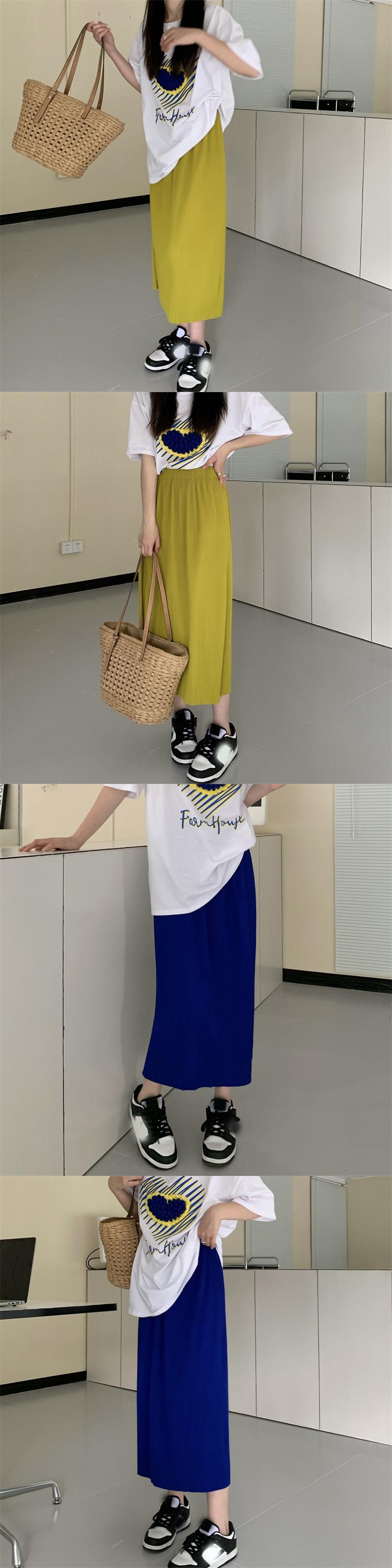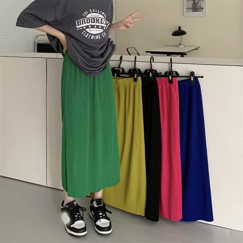 マスタードイエロースカート 夏服ハイウェストウェストAラインロング 夏物 ウエスト ミドル丈 SYJ27980969103