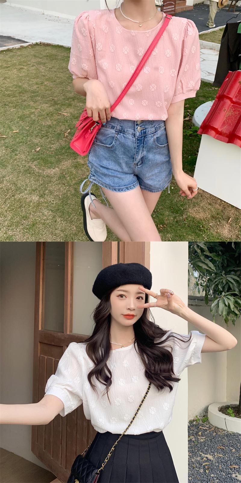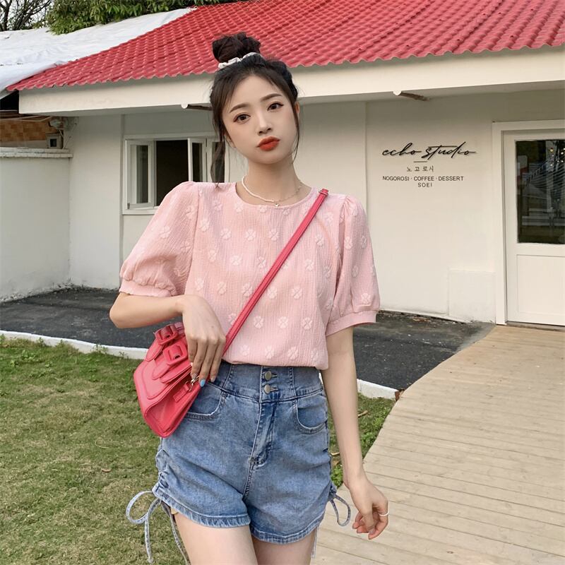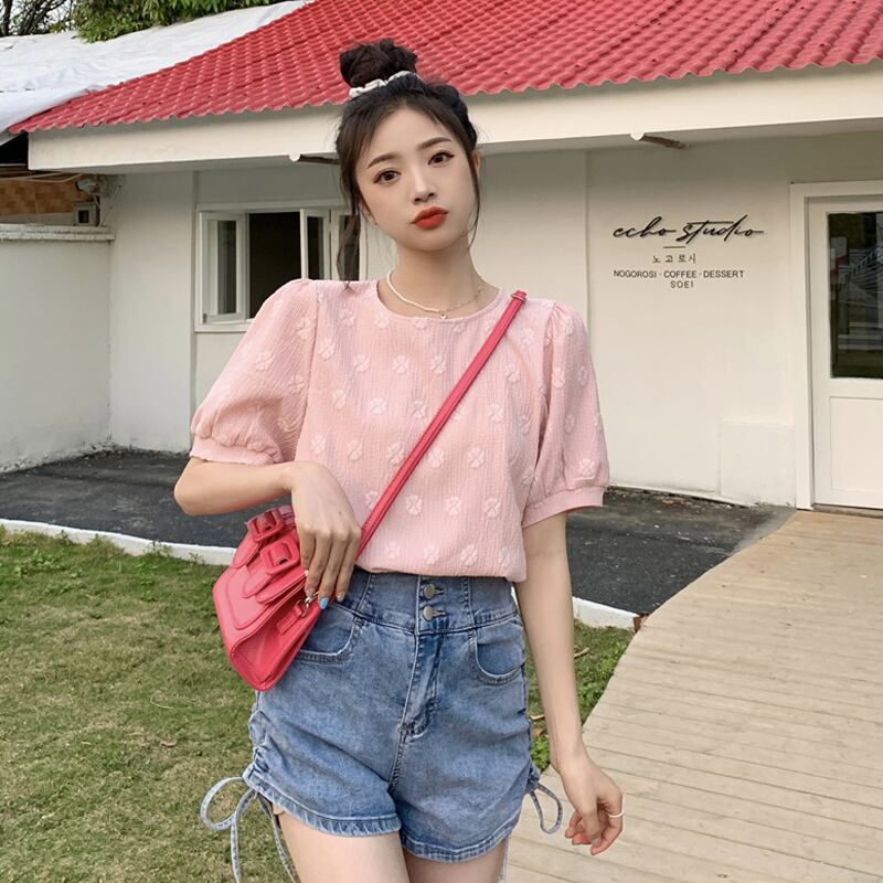 スリーブトップス 夏服ホワイト 大人ガーリー スウィート キュート カジュアル 夏物 SYJ51750368872