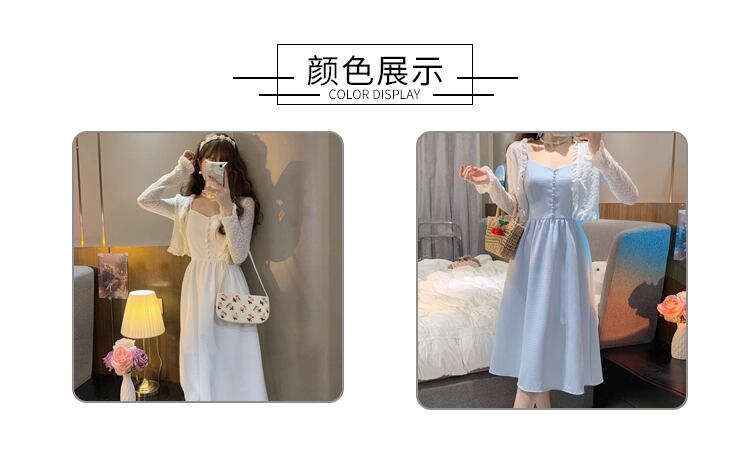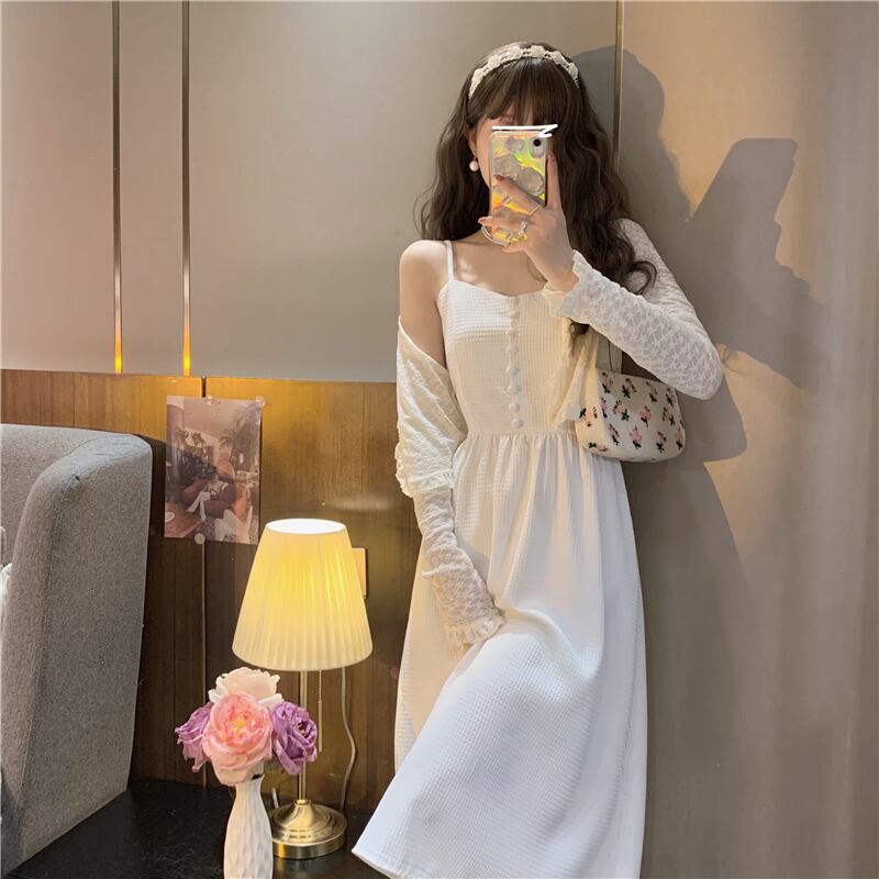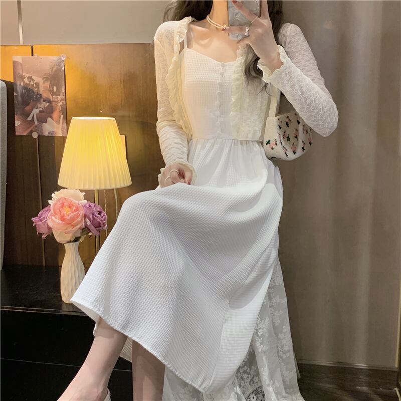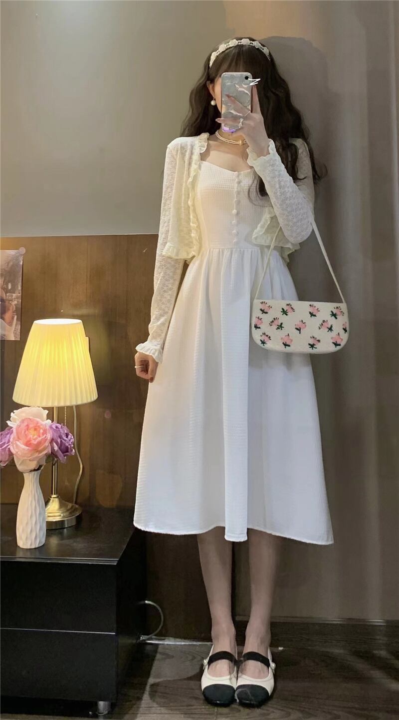 色:白いワンピースのワンピース,ホワイトカーディガンワンピース,青いドレスワンピース,ワンピースアプリコットカーディガン